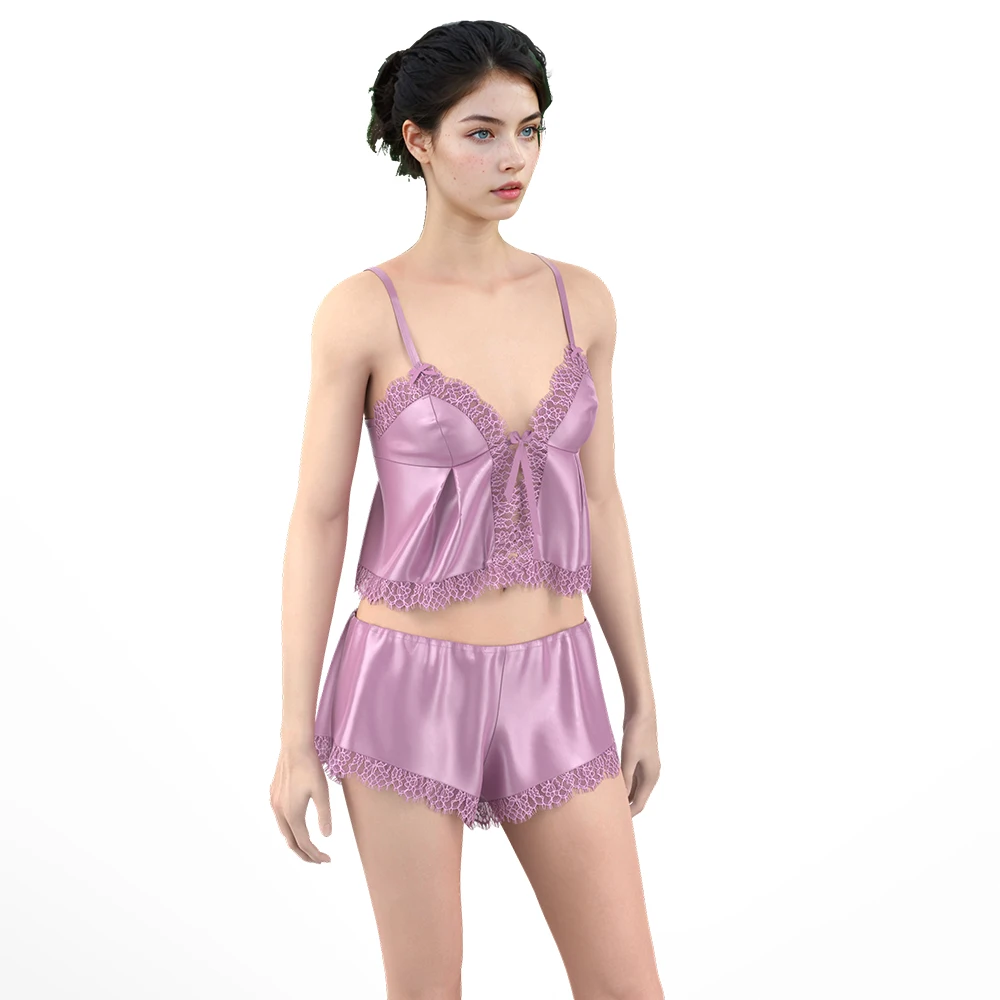 Hot Sexy Custom Satin Lingerie Set for Women Embroidered Bra and Panty Daily Breathable Satin with Lace Decoration