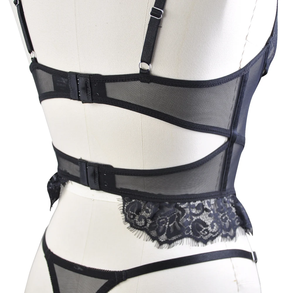 Women's Sexy Hot Pattern Corset Lingerie Set Hot Underwire Bra Briefs Lace Embroidered Bodysuits Seamless Bra Panty for Adults