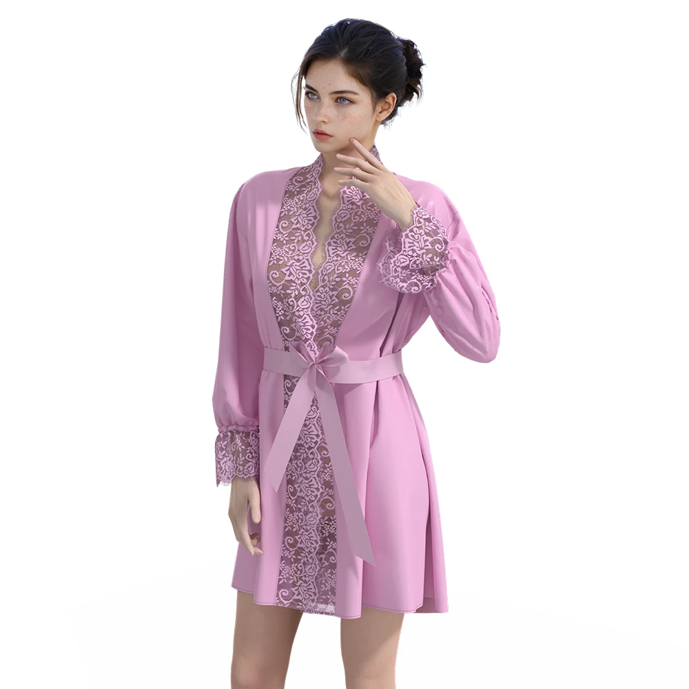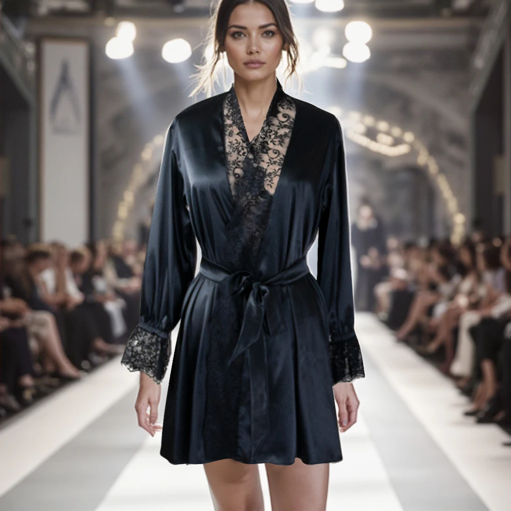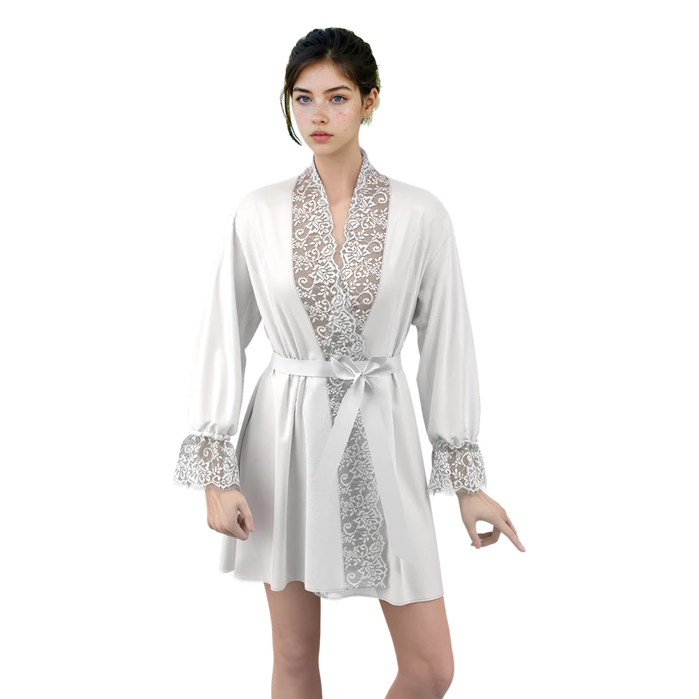 Custom Summer Sexy Nightdress Women's Satin Pajamas Spring Summer Ice Long Nightgown Lace Nightwear