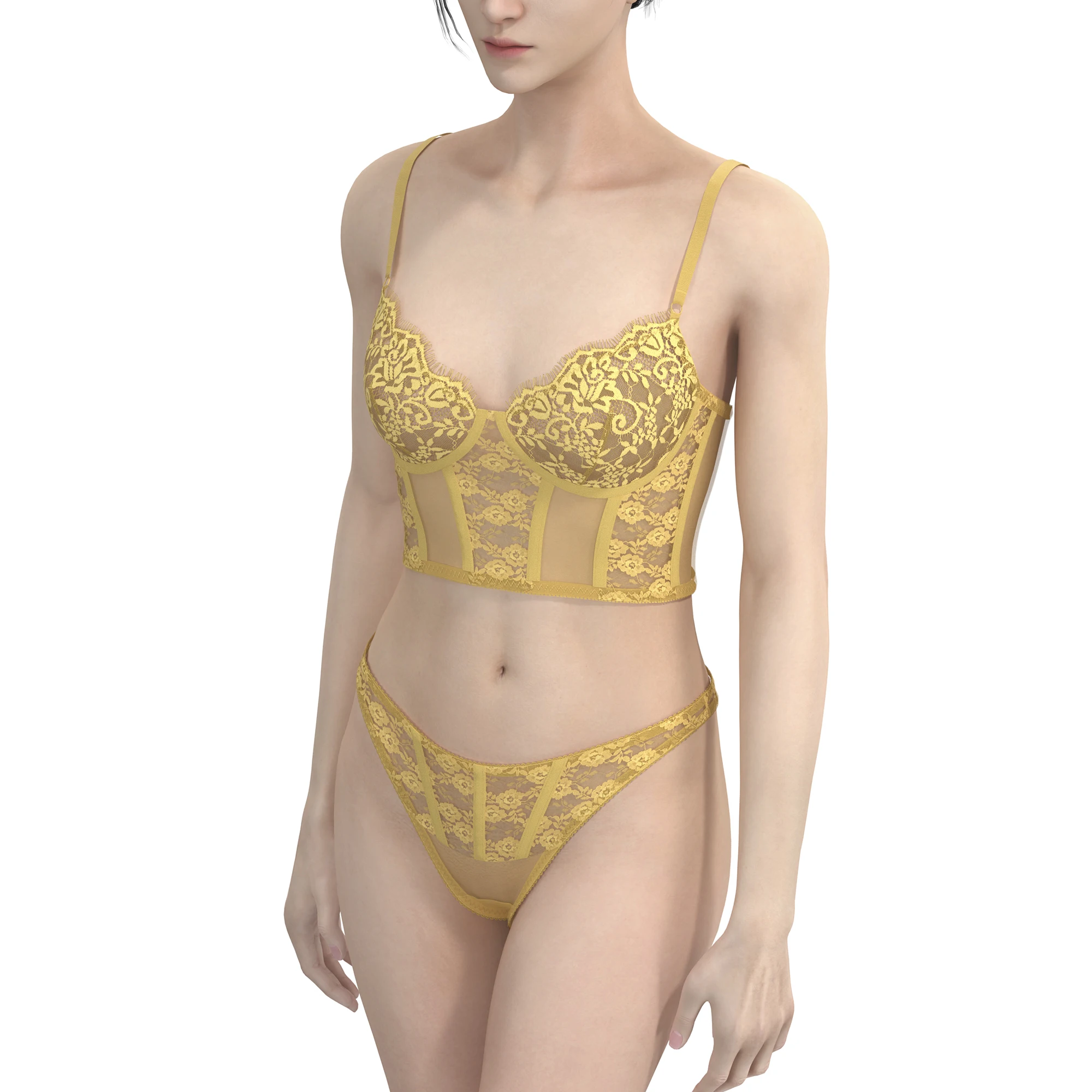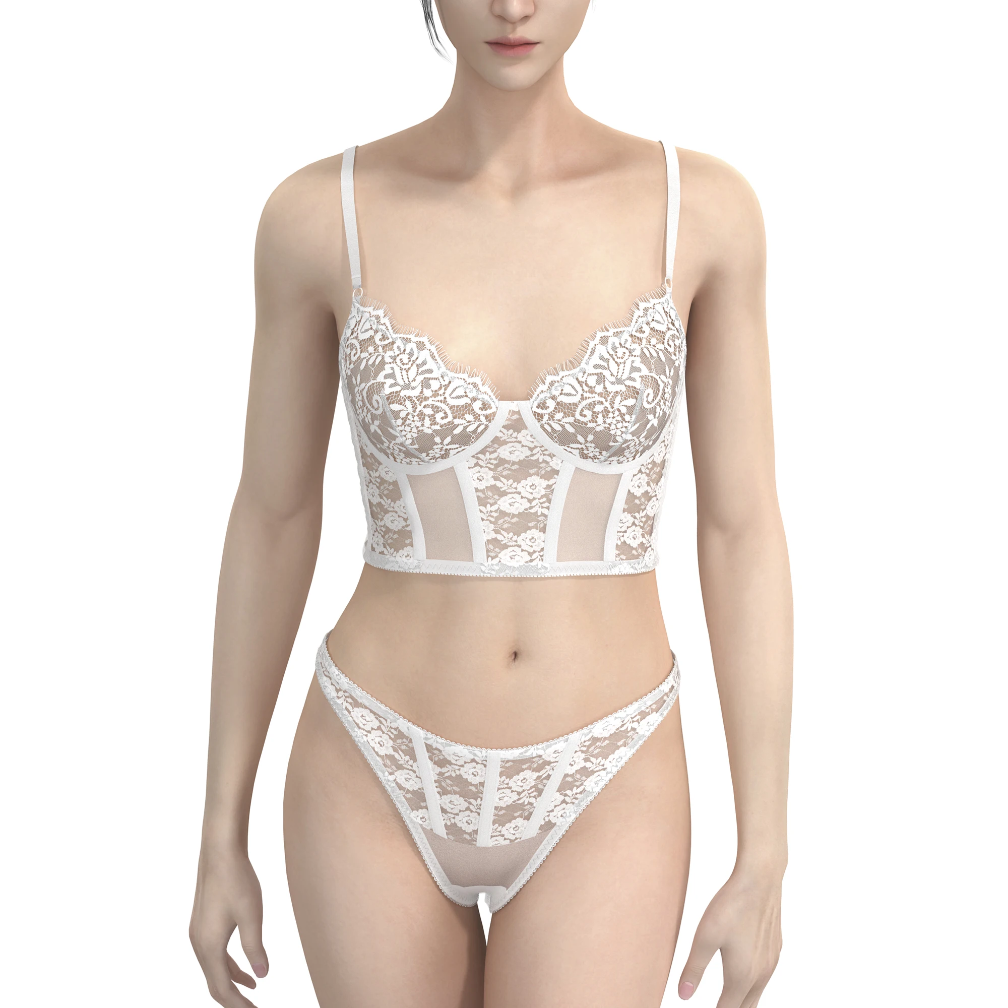 Women's Sexy Breathable Cotton Lace Lingerie Set Embroidery Plus Size Bra Panty Custom Logo Waist Wholesale Underwear Bikini