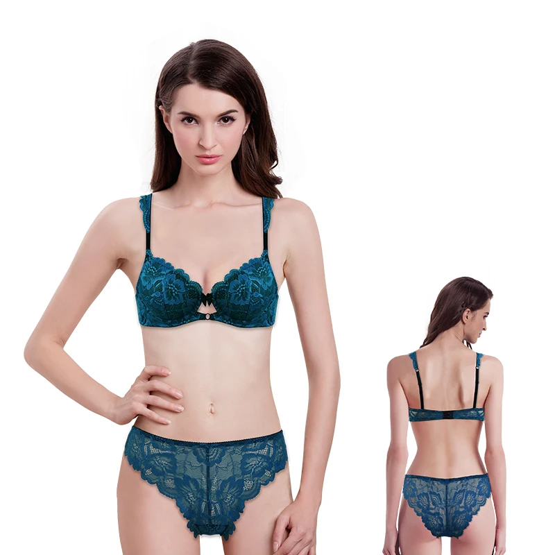 Women's Floral Sexy Lace Breathable Lingerie New Design Romantic Bow Panties Bra Sets Embroidery Button Decoration Seamless See