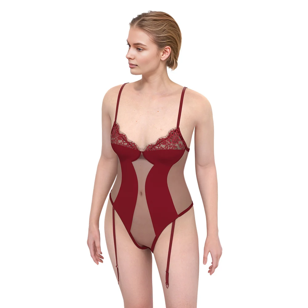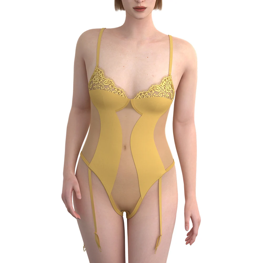 2026 Mature Style Sexy Open Transparent Lingerie Set Bodysuit Shaper Thin Thickness Stockings Machine Embroidery Lace Decoration