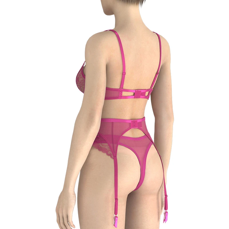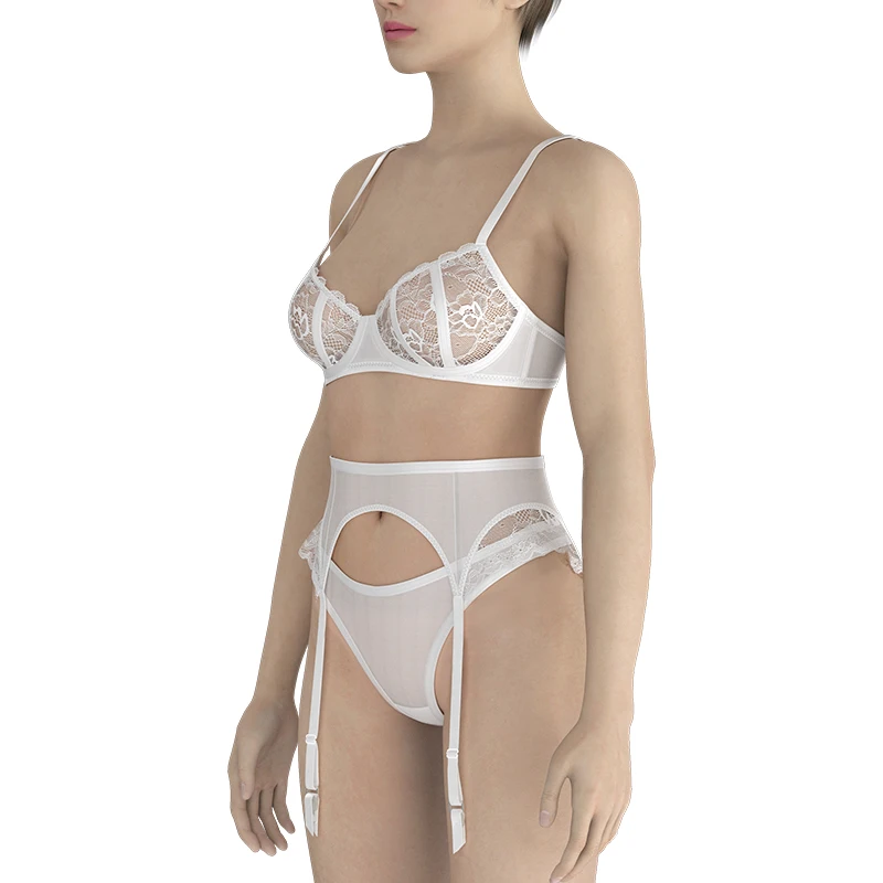 Chinese Factory Women's Sexy Lace Bra Brief Sets Transparent Underwear Bow Embroidery Adjusted-Straps Customizable Cup Waist