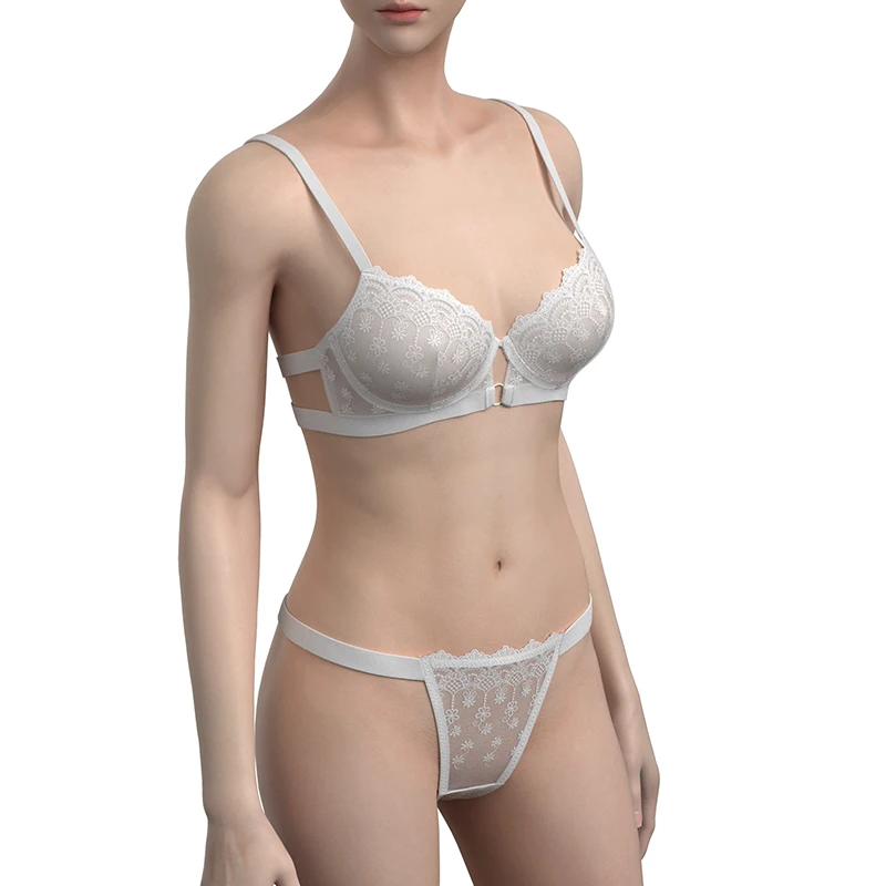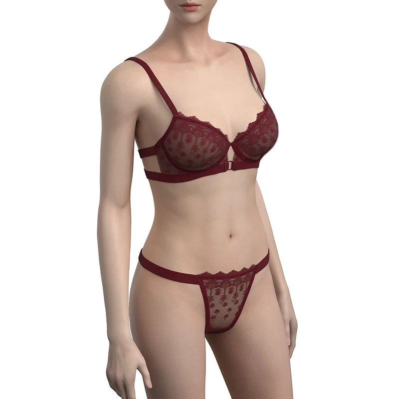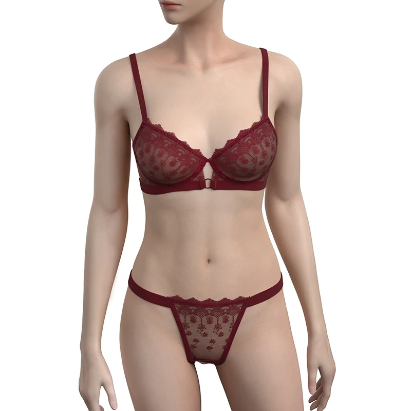 Women's Elegant Floral Embroidery Sexy Lace Lingerie Set Soft Bikini Style Seamless Panties Bra Elegant Floral Seamless Seamless
