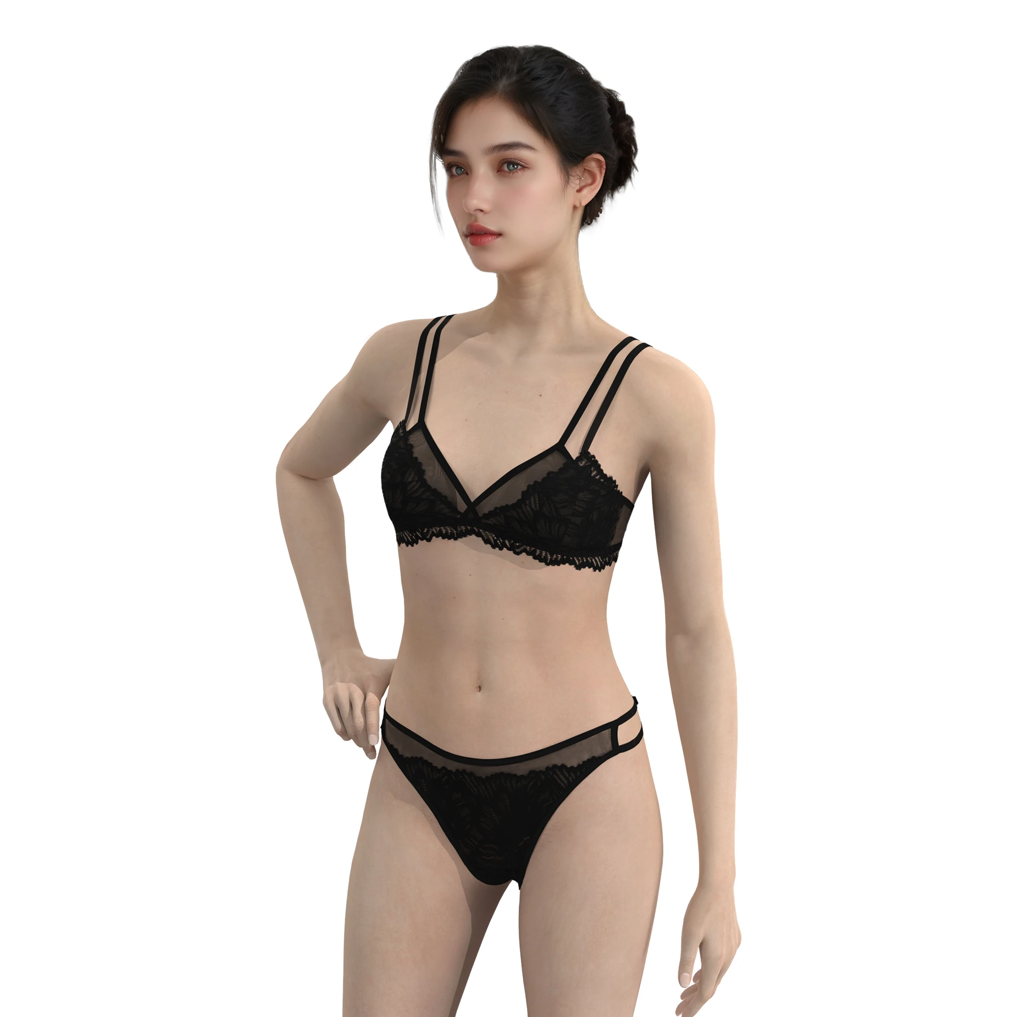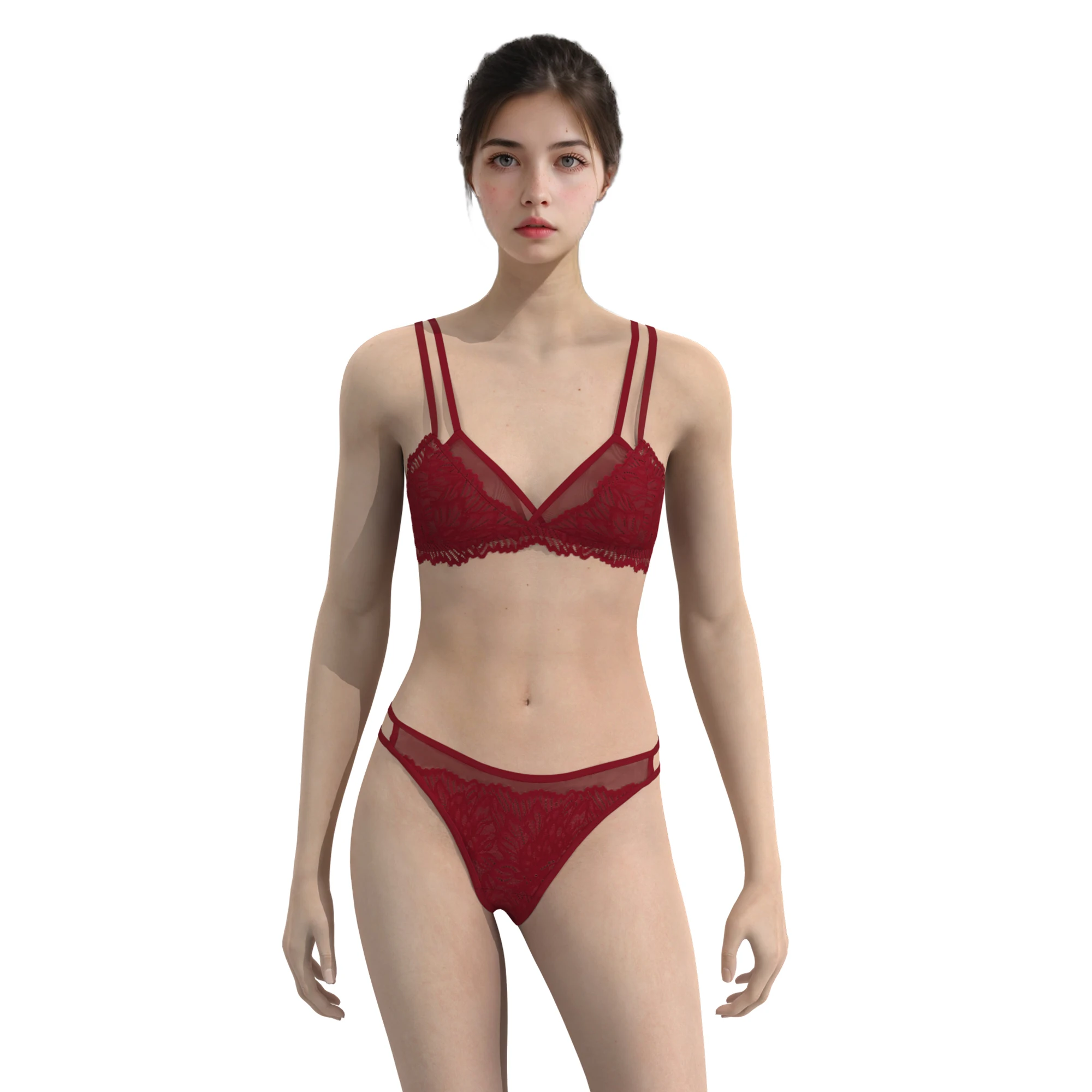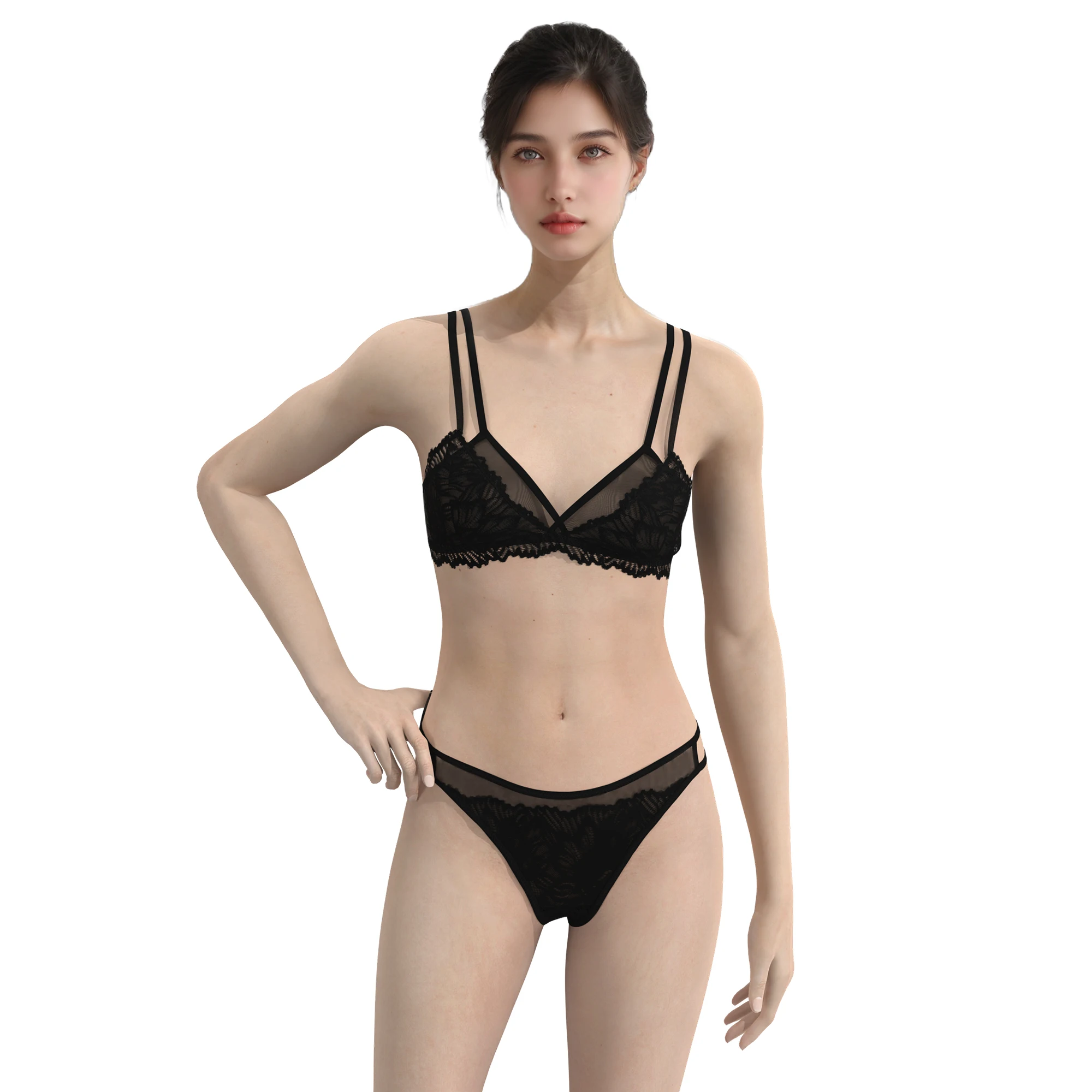 Wholesale Sexy Strapless Bra Panty Lingerie Set Hot Lace Embroidery Plus Size Underwire Support Bikini Lingerie