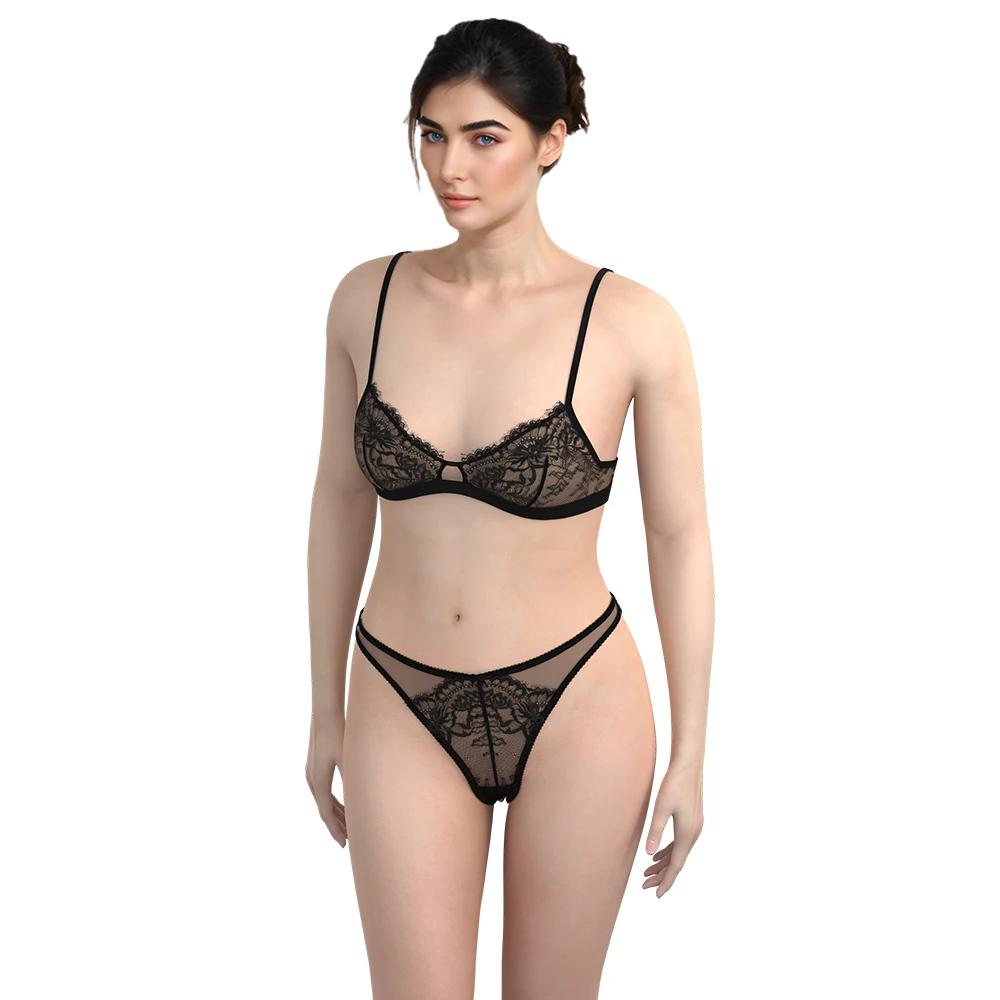 Lady Corset Bra & Panty Sets Fashion Sexy See Through Embroidery Lace Lingerie String Thong Bra Manufacturer Underwear