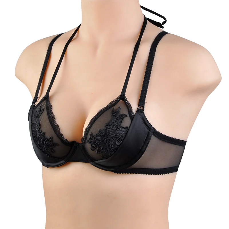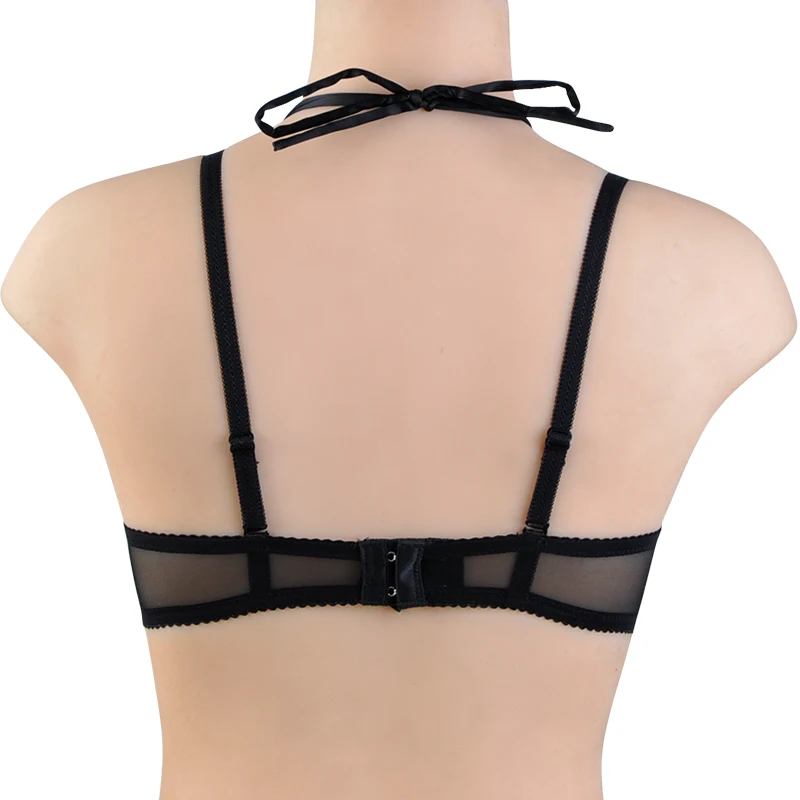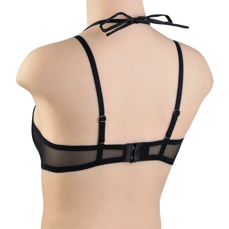 Embroidery Applique Flower Bra Halter Tie Comfortable Soft Cup Underwire Lace Bra Transparent Women Sexy Lingerie Underwear Bra