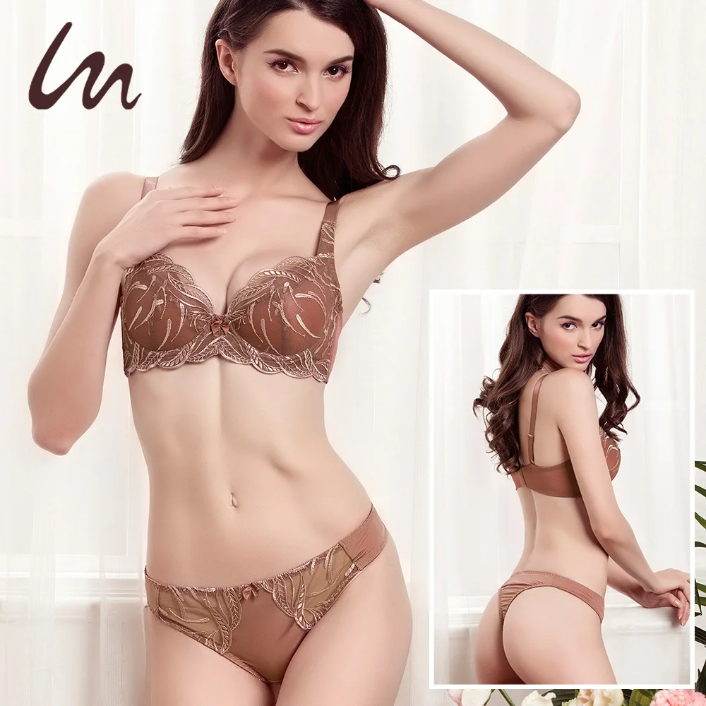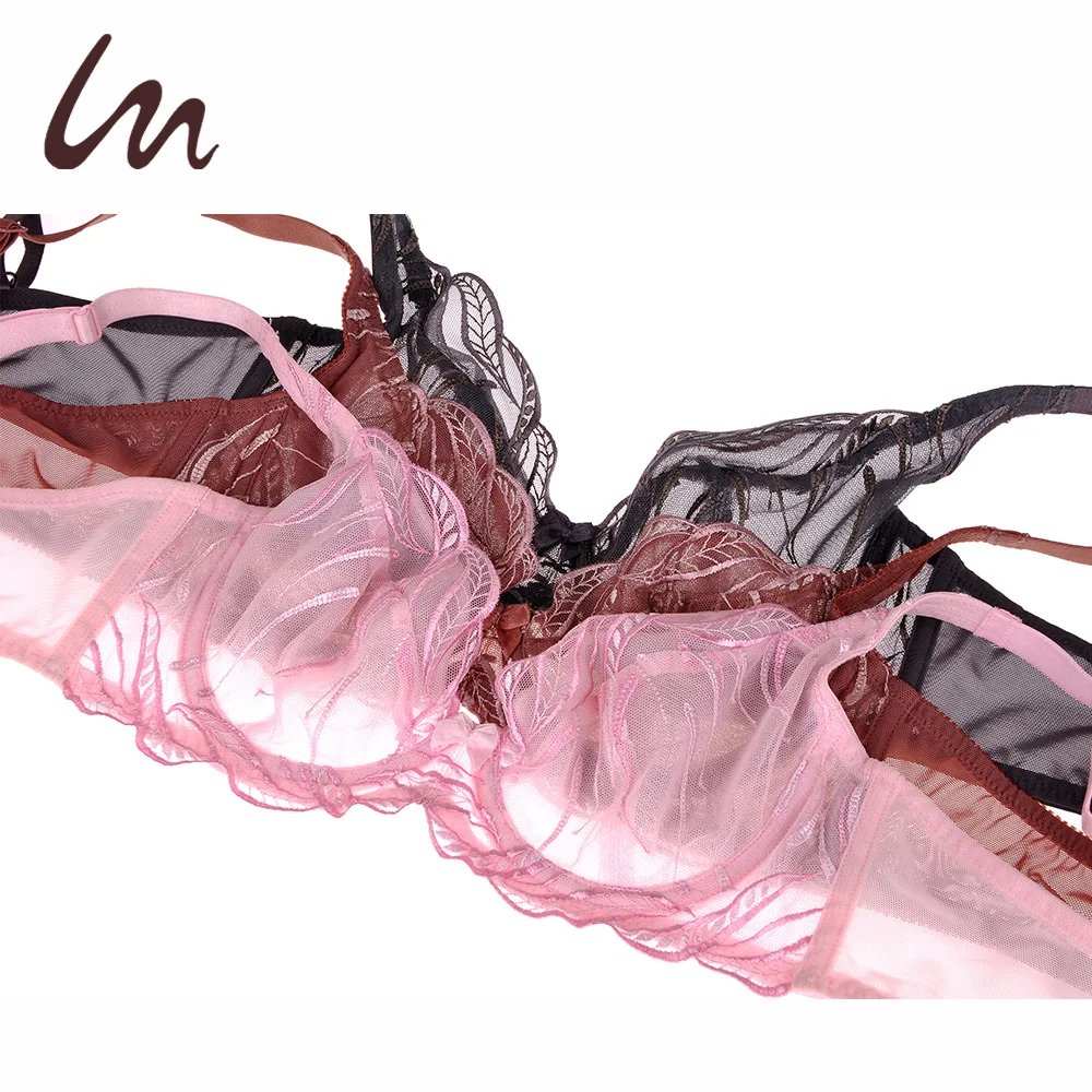 Embroidery Lace Bra and Thong Set Sheer Cup Breathable Underwire Factory Wholesale Sexy Fancy Hot Lace Bra and Panty Set