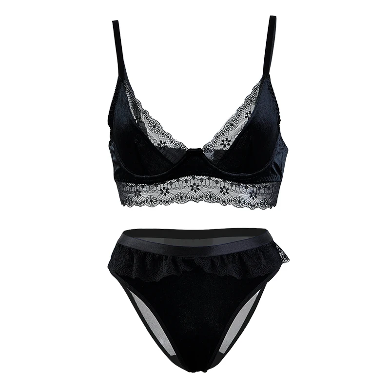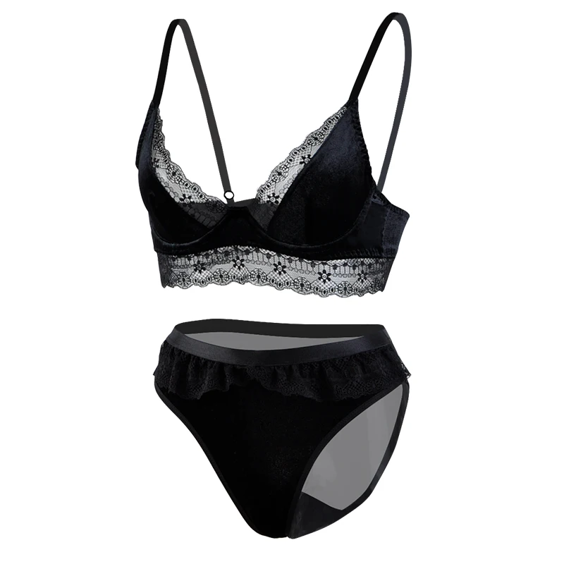 RTS Women Lace & Velvet Underwire Lingerie Bra and Panty Underwear Set Soft Cup Bra Panties Intimate Bra & Brief Set
