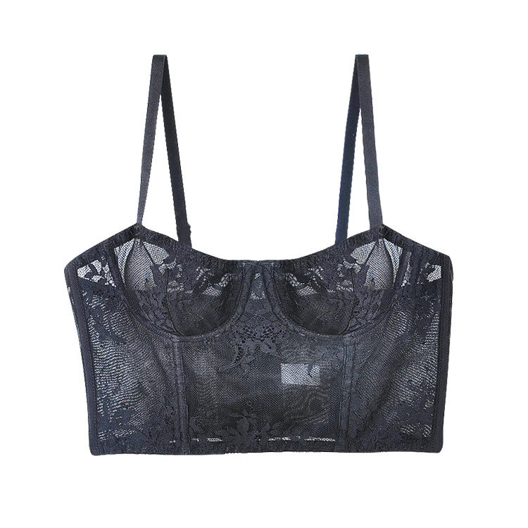 Longline Sexy Women Underwear Lingerie Nightwear Lace Embroidery Flower Clothes Set Sleepwear Push up Bra