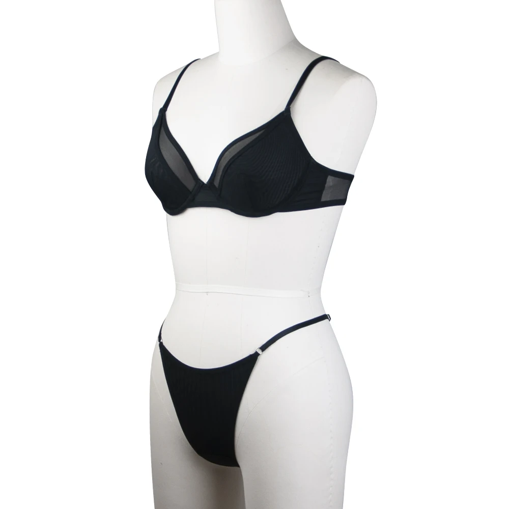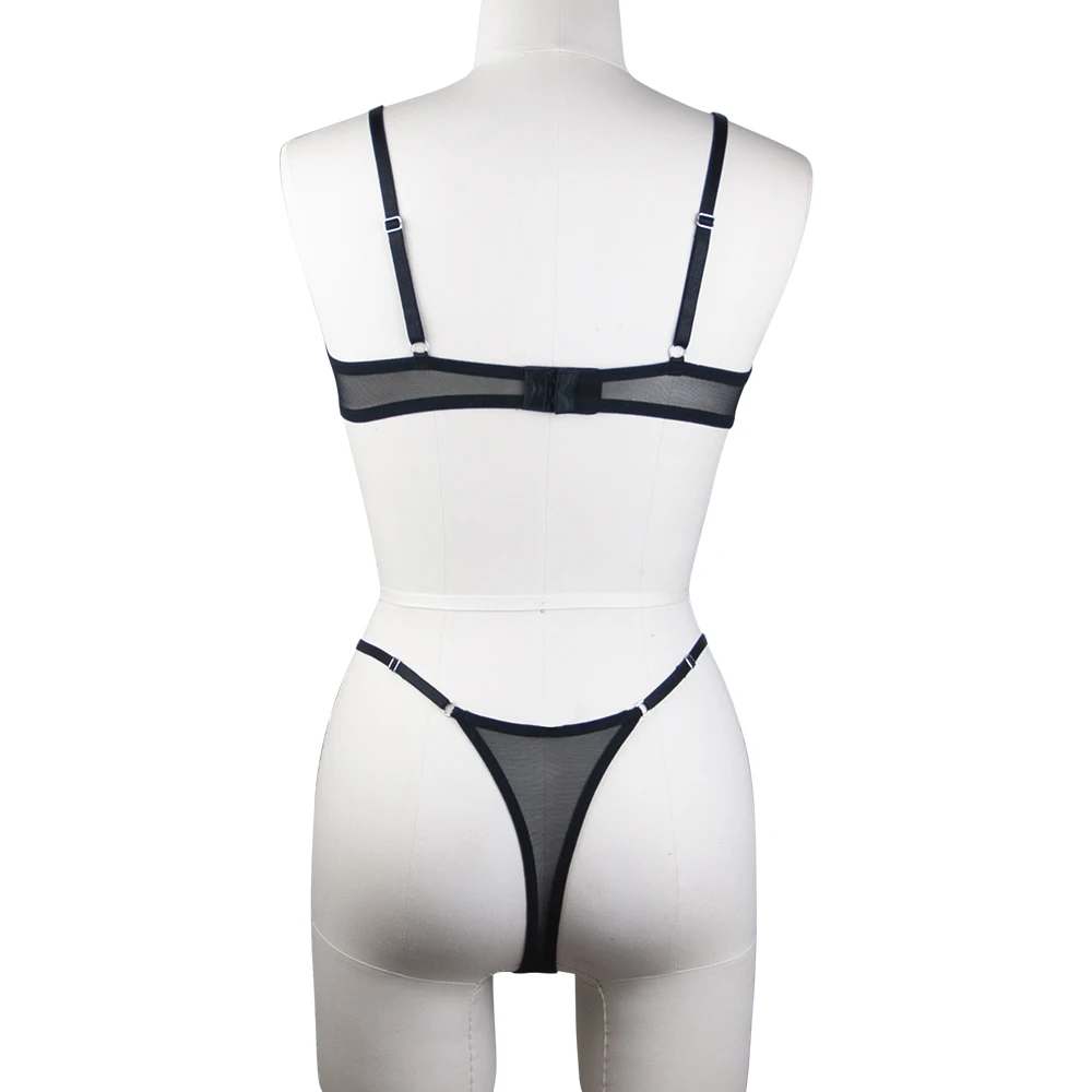 Underwire Bra Thong Set Mesh Transparent Lingerie Set Customized Bra Brief Underwear Set