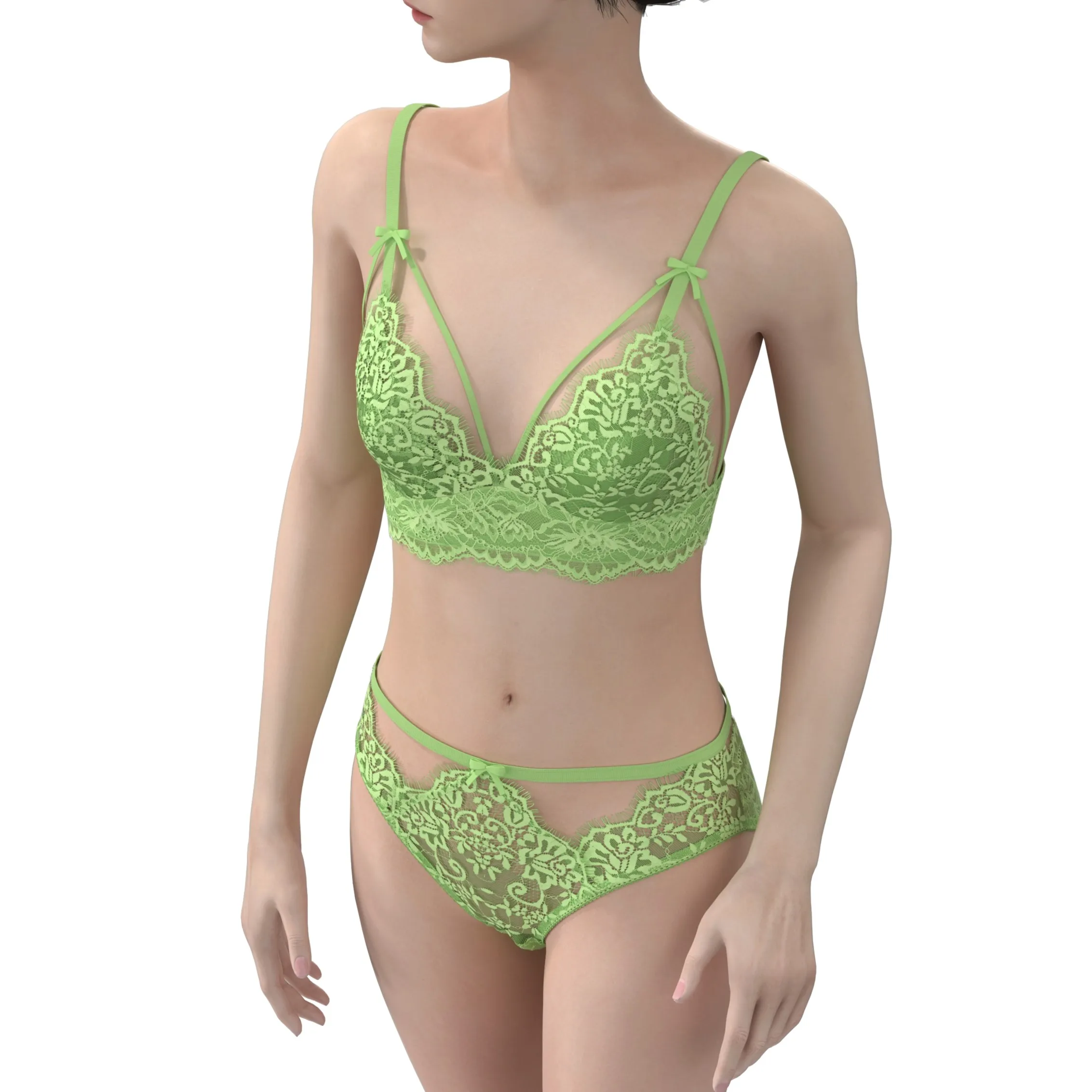 High Quality Women's Cotton Lace Floral Embroidery Underwire Bra and Panty Set Sexy Underwear with Logo on Waist Breathable