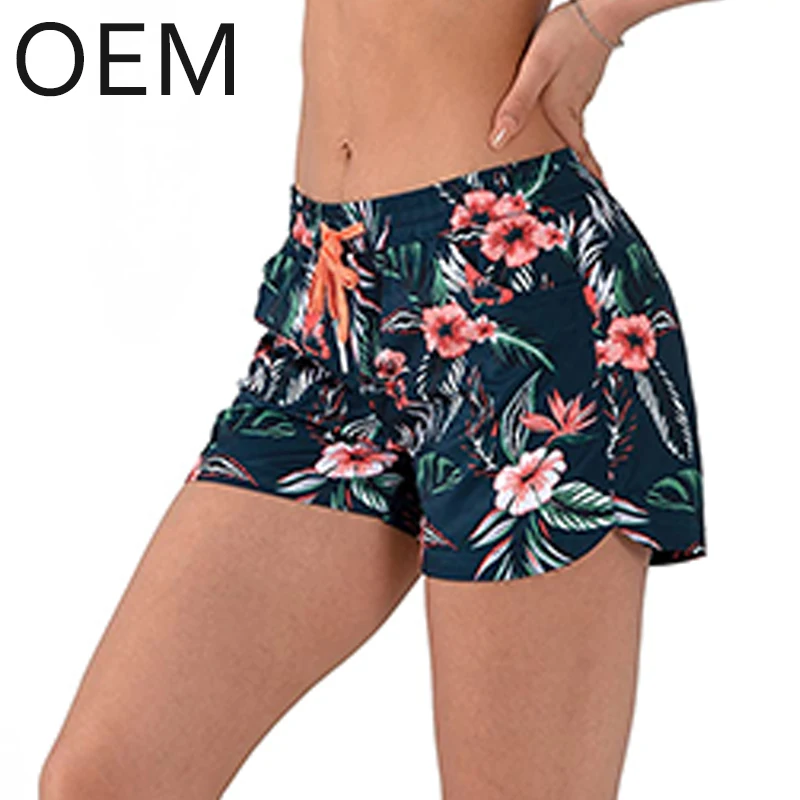 Factory Custom Floral Print Cover up Beachwear Women Casual Beach Shorts Quick Drying Swim Trunks