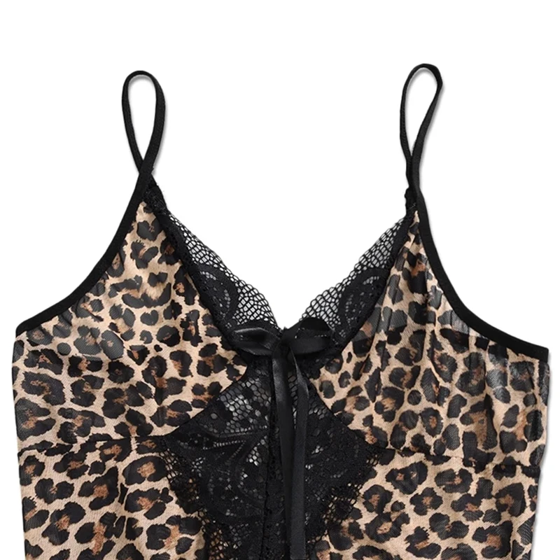 Singapore Hot Sales Corrugated Leopard Pajamas One-Piece Suspenders Underwear Plus Size Lingerie Women Sexy Luxury Lingerie
