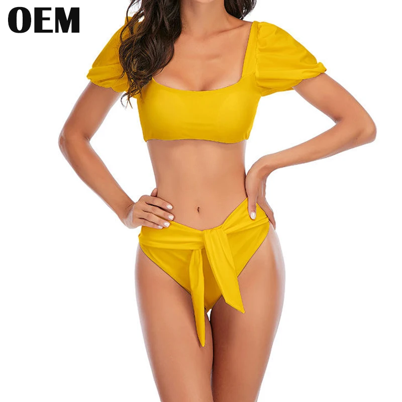 Factory Custom White Bow Bikini Sets Women Swimwear Suits Cute Beachwear Two-Pieces Ladies Bathing Suits