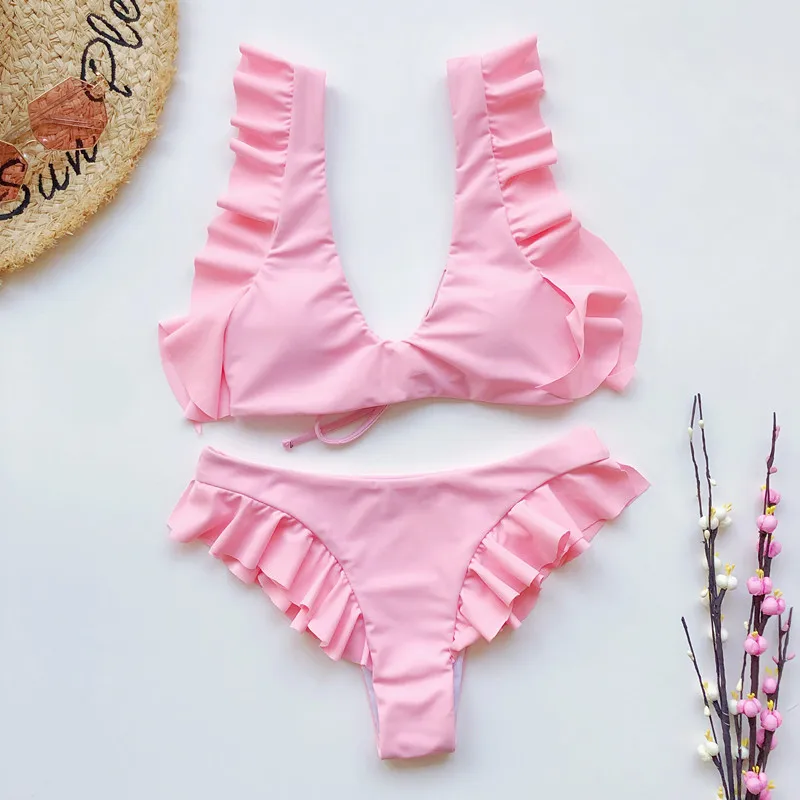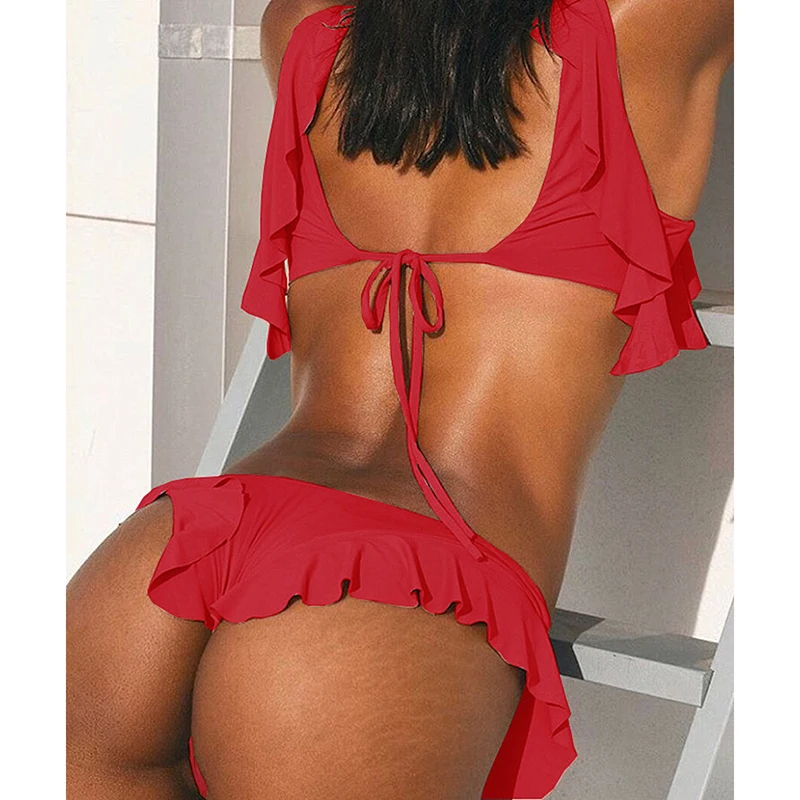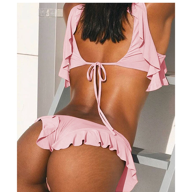 Fashion Beach Swimwear Solid Backless Swimsuit Two Piece Bikini Sets Women Swimming Dress