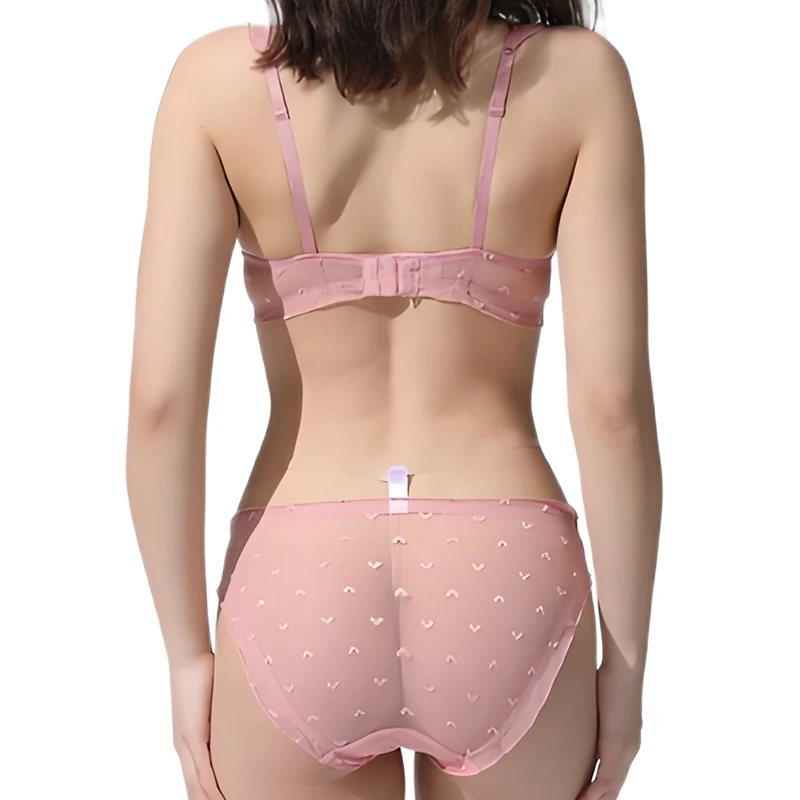 Women's Ultra-Thin Lace Lingerie Set Sexy Solid Color Breathable Bra with Wavelet Dot Print Bow Decoration Comfortable Underwear