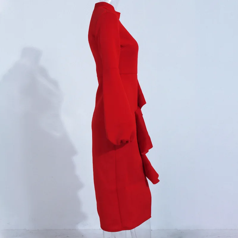 New Fashion Design Women's Sexy Slim Irregular Ruffled Red Evening Dress One Shoulder Dress for Party