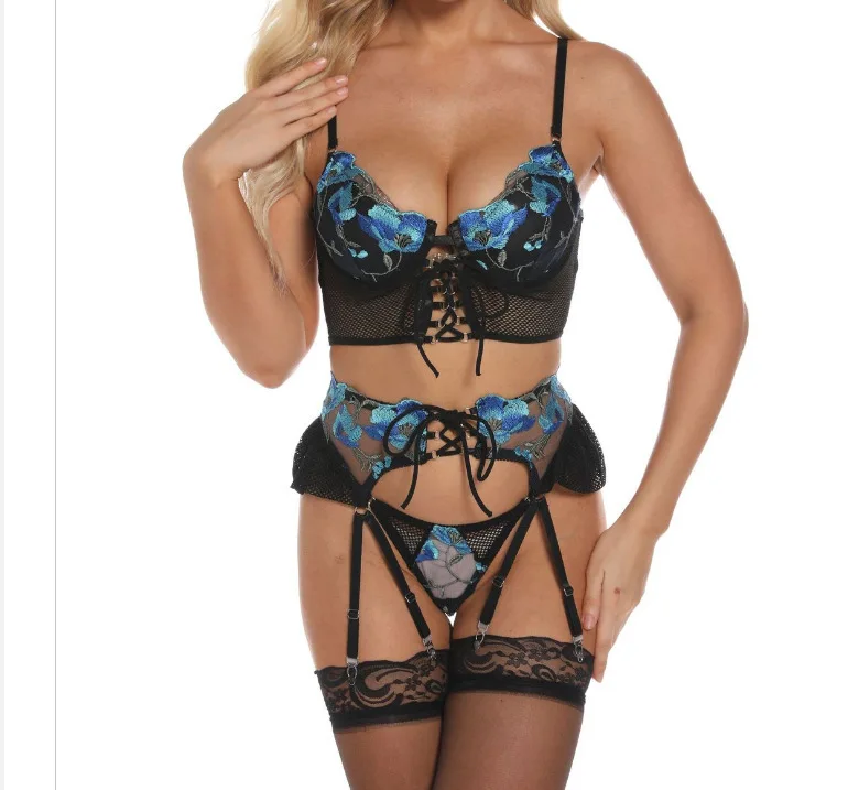 New Erotic Bandags Transparent Bra Underwear Fashion Ruffled Garters Fantasy Thong Sexy Lingerie Sets