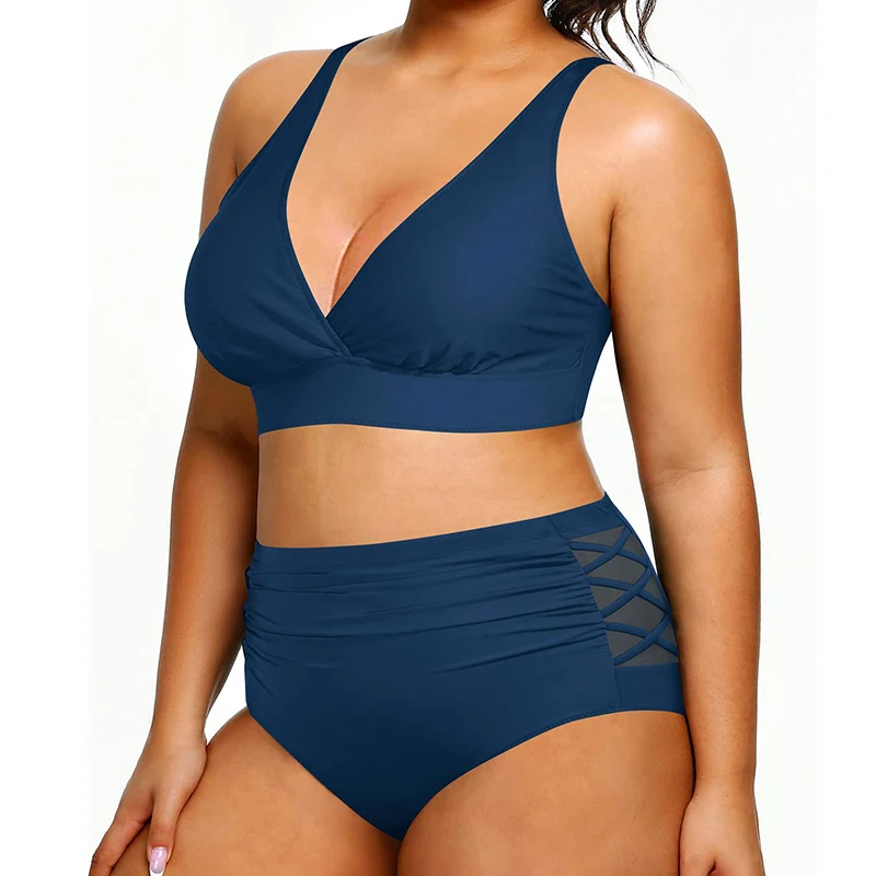 Asian Trending Two Piece Swimwear Beachwear Fat Women Bikini Plus Size Swimsuits for Women