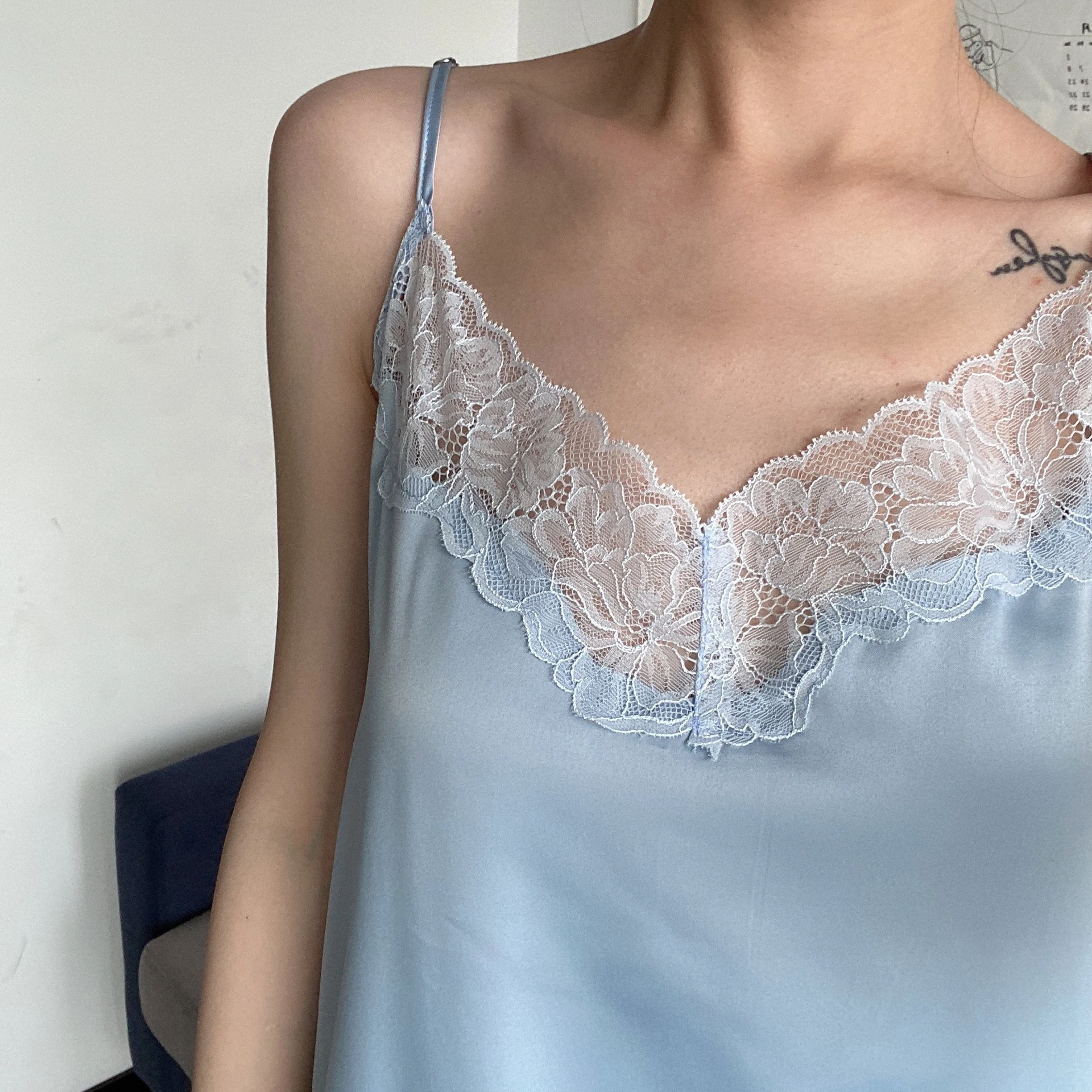 New Arrival Lace Trim Woman Sexy Nightdress Satin Nightdress Sleepwear