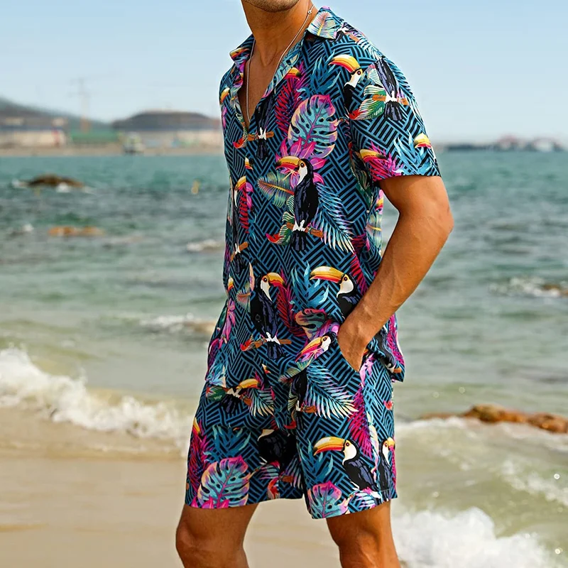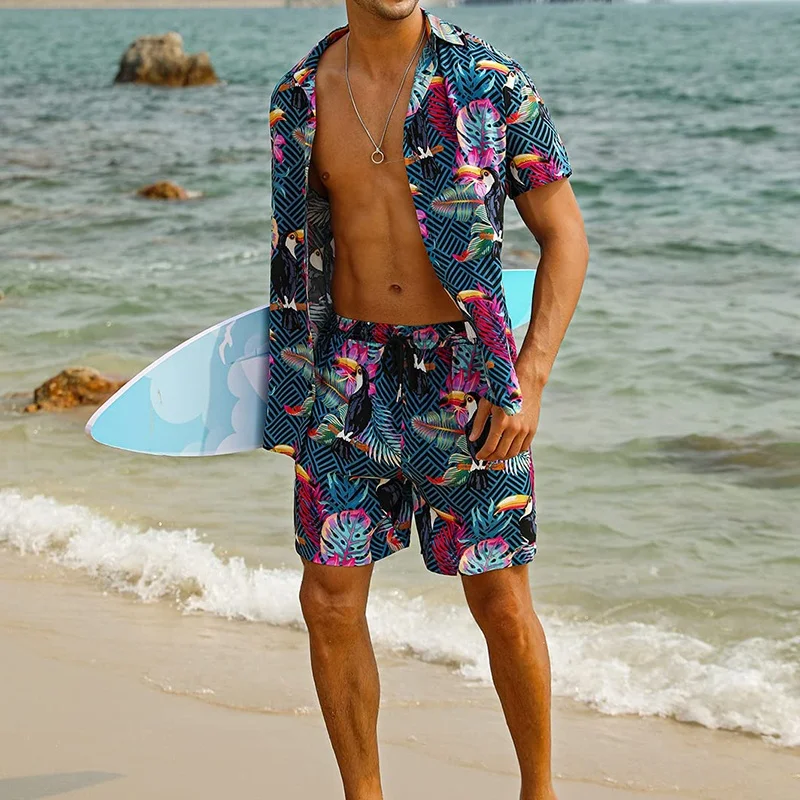 Thailand Hot Sales Swimwear Beachwear Men Cartoon Letter Vacation Style Short Sleeve Suit Swimsuits for Men
