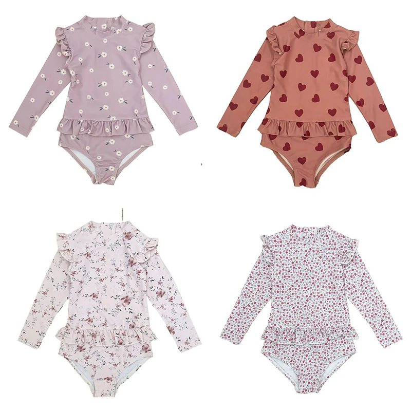 2026 New Arrival Cute Kids' Long Sleeve One-Piece Swimsuit for Girls - Quick-Dry Uv Protection Swimming Gear for Children