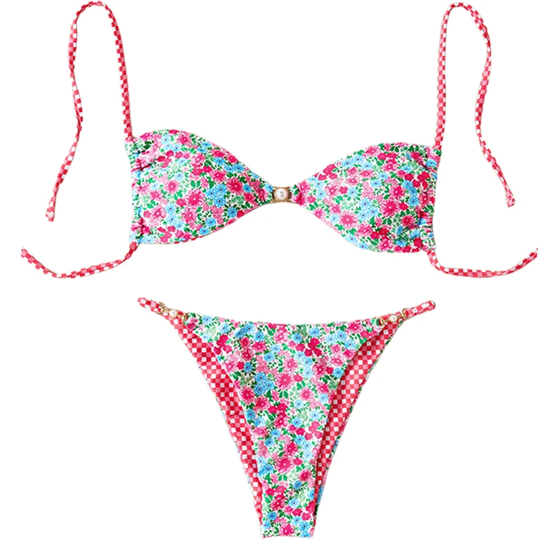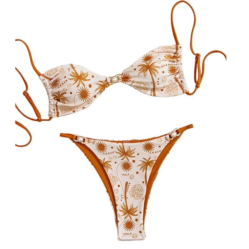 2026 New Women's Triangular Lace up Print Swimsuit with Front Logo Sexy 2-Piece Set Bikini Split Swimsuit