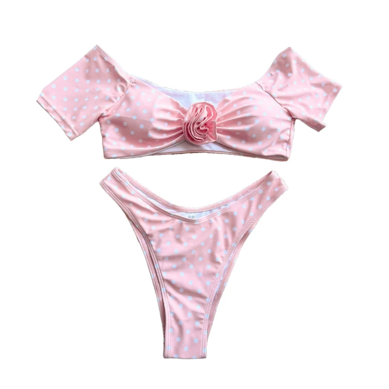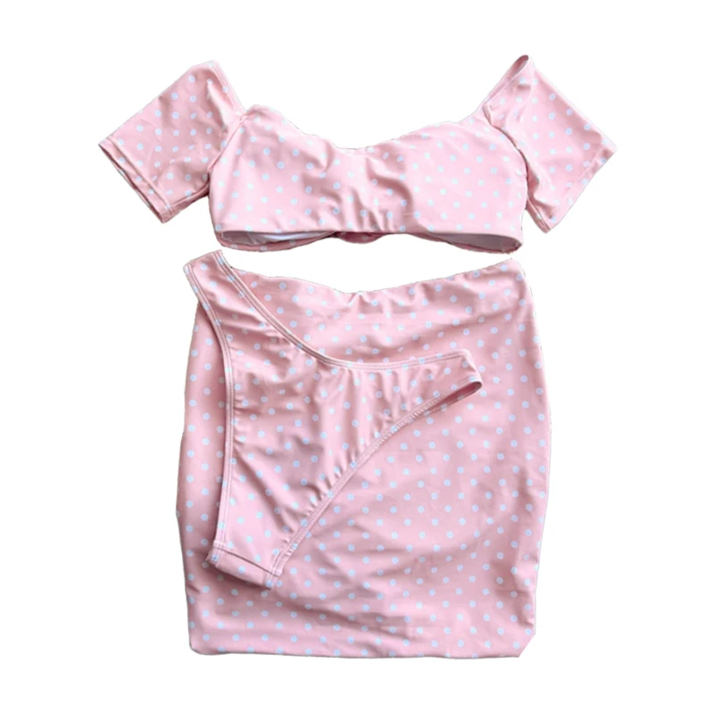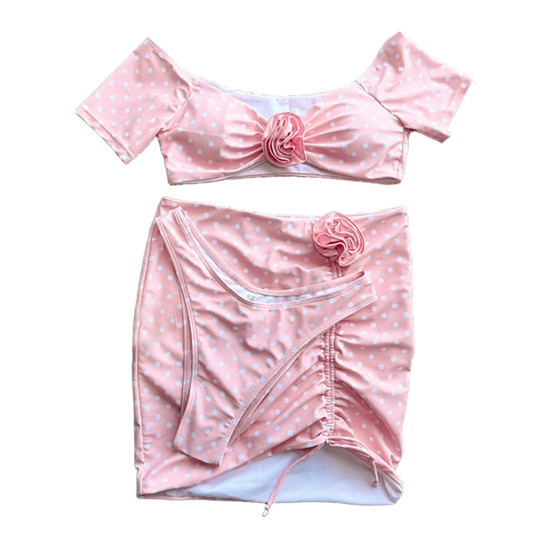 2026 New Pink Sexy Bikini Three Piece Set Flower Split Women's Swimwear Swimsuit Women Swimsuit With Skirt