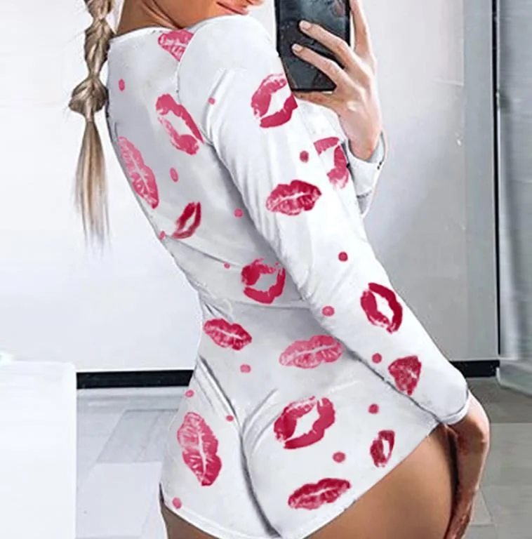 Factory Wholesale Summer Autumn Knitted Front Comfortable Women's Long Sleeved Sexy Onesie One-Piece Pajamas