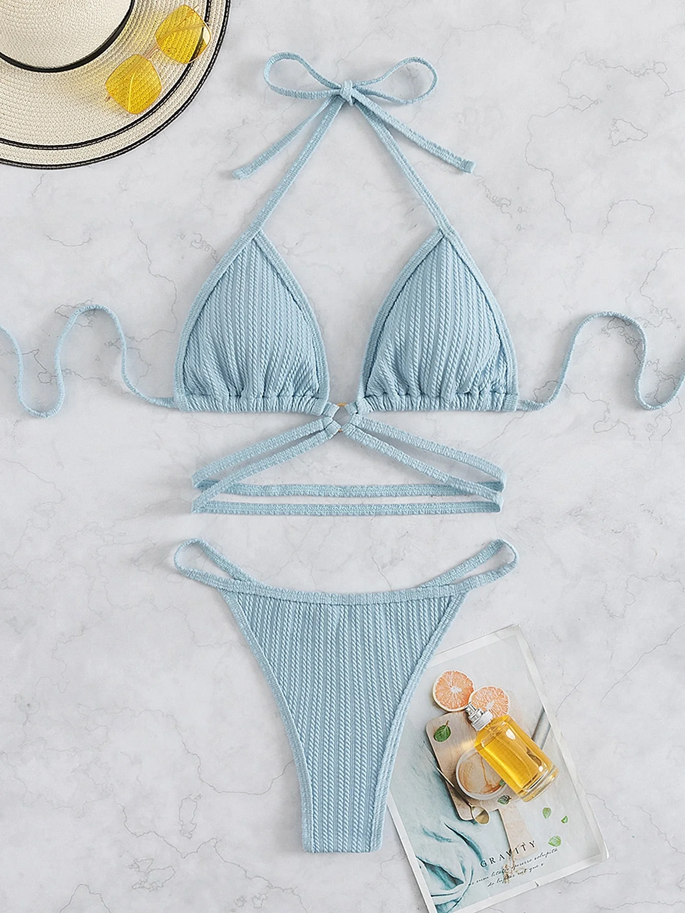 OEM Manufacturer Anti-UV Quick Dry Eco-Friendly Tie Back High-Waisted Sexy Textured O-ring Detail Halter Micro Bikini Swimsuit