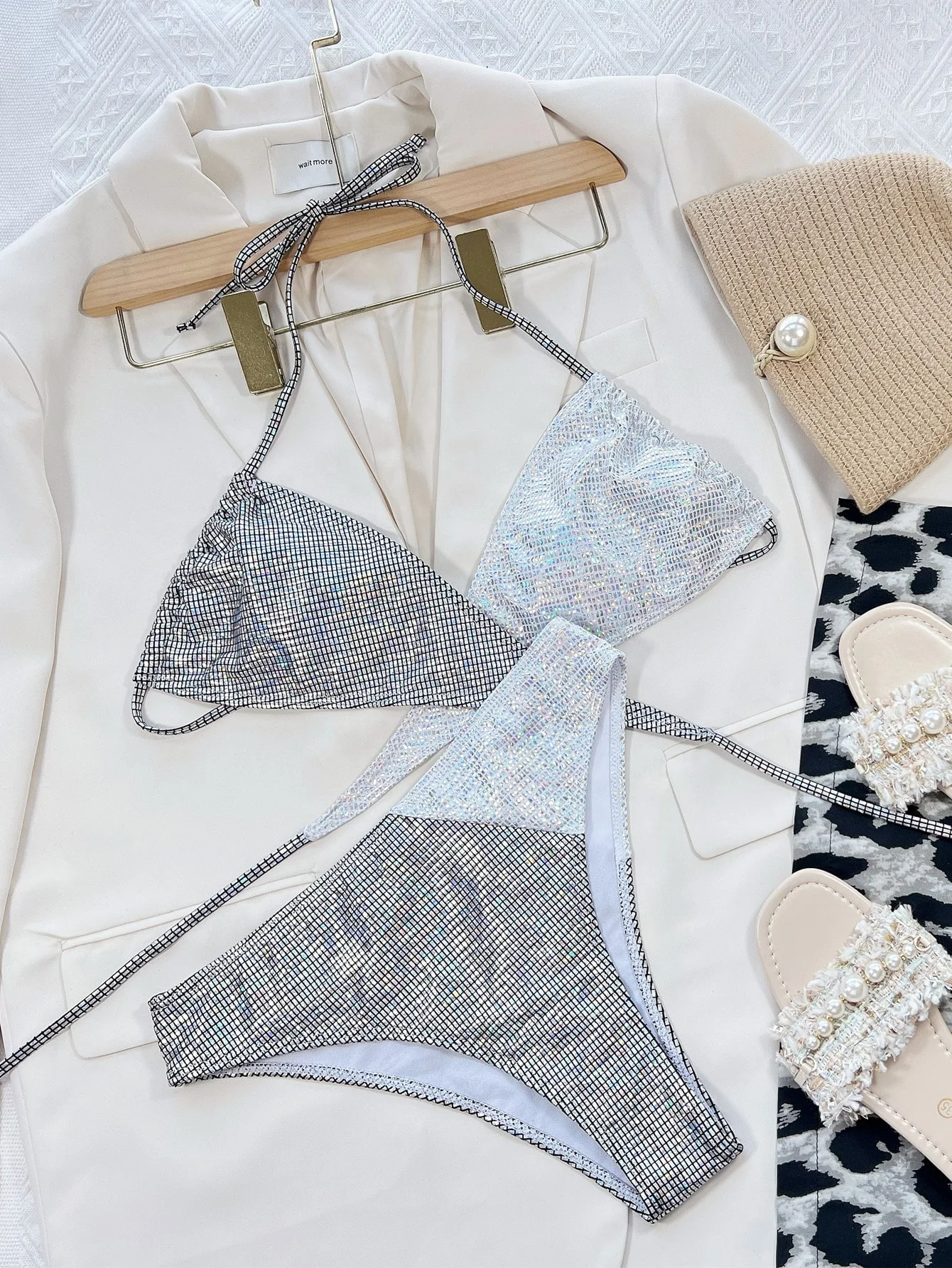 Hot Selling Women Plaid Two Tone Wrap Cross High Waist 2 Pieces Bikini Swimsuit