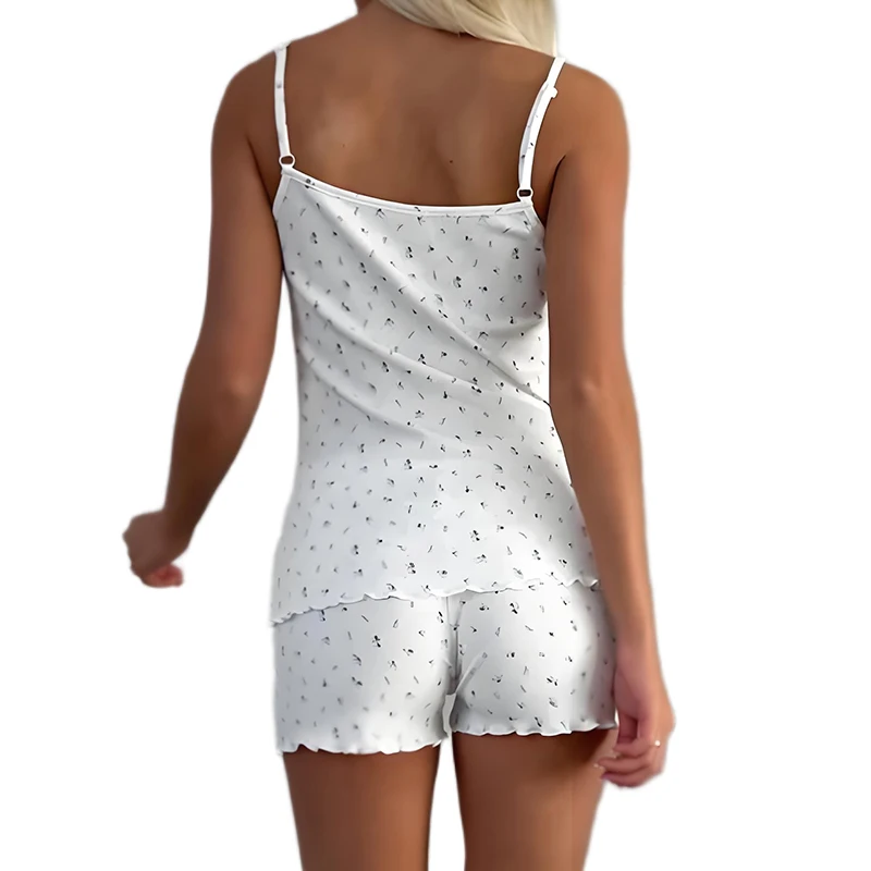 Summer New Women's White Sexy Pajamas Home Clothes Knitted Printed Strap Top Shorts Pajama Two Piece Set