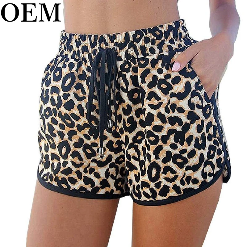 New Drawstring Casual Pants for Women Womens Fashion Summer Beach Shorts Versatile Sexy Leopard Print Beach Shorts