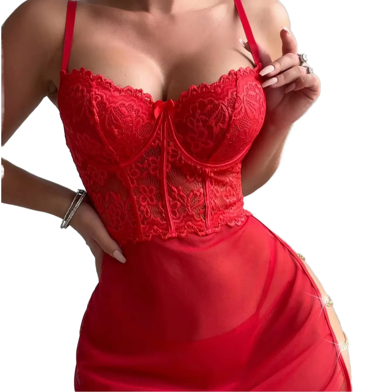 2026 European American Sexy Lace Underwear Adjustable Strap Embroidered Hollow Black Perspective Pajama Embroidery Hot Lenceria
