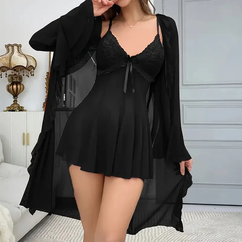 Sexy Breathable Summer Woven Underwear Deep V See-through Seduction Pajamas Pure Desire Nightdress Passion Free off Suit