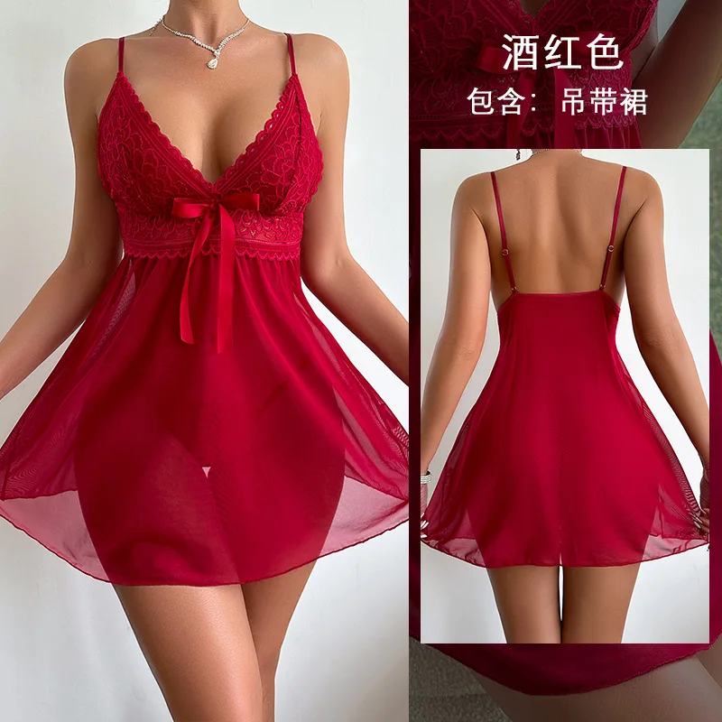 Elegant Summer Nightdress Set Sexy Little Suspender Pajamas Polka Dot Mesh Knitted Elastic Waist Closure Knee Length Fashion ODM