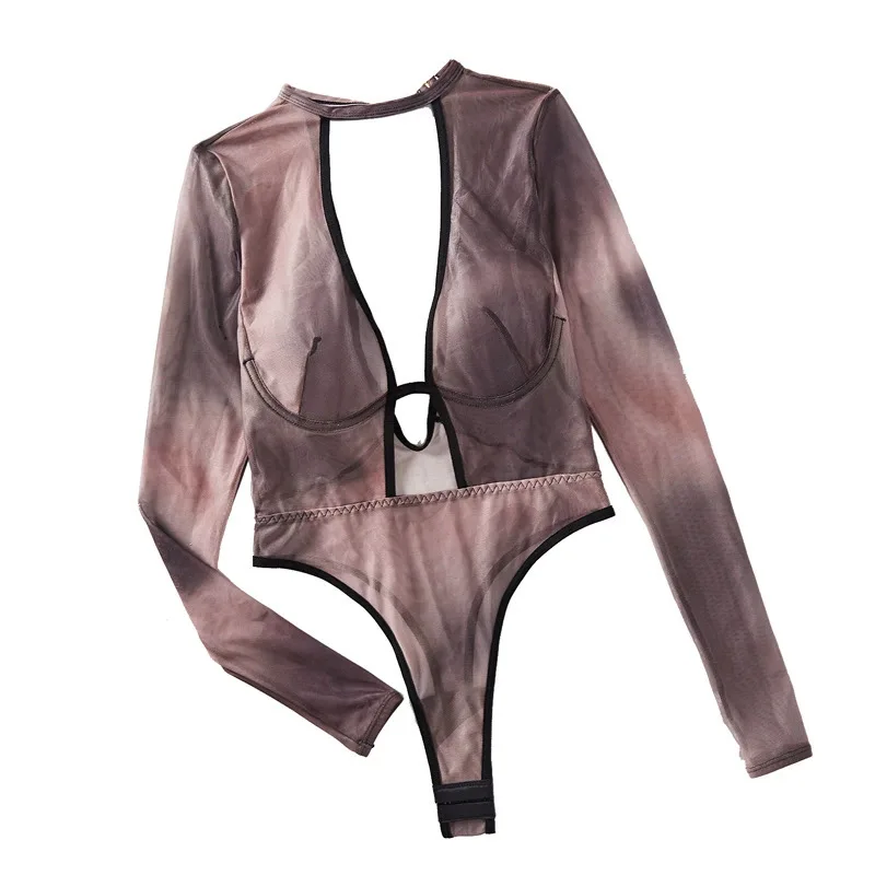 Long Sleeves Bodysuit Sexy Suspenders Erotic Women's Clothing Transparent Hot Selling Mesh Thin Lingerie