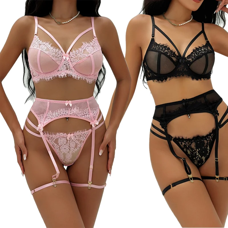 White Eyelash Lace Lingerie Set Floral Embroidered Bra Panty Romantic Delicate Trim Premium Womens Underwear Light Control Combo