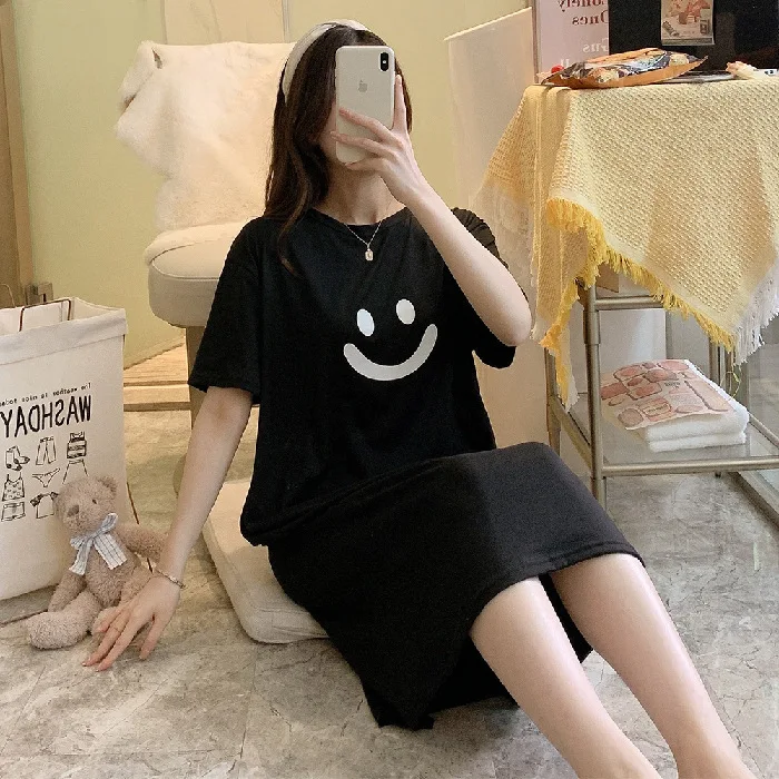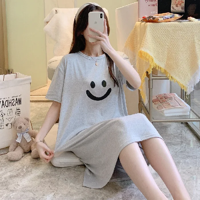 Smile Face Piyama Dresses Women Nightgown Korean Sleepwear Pijama Designer Free Size Women's Clothing