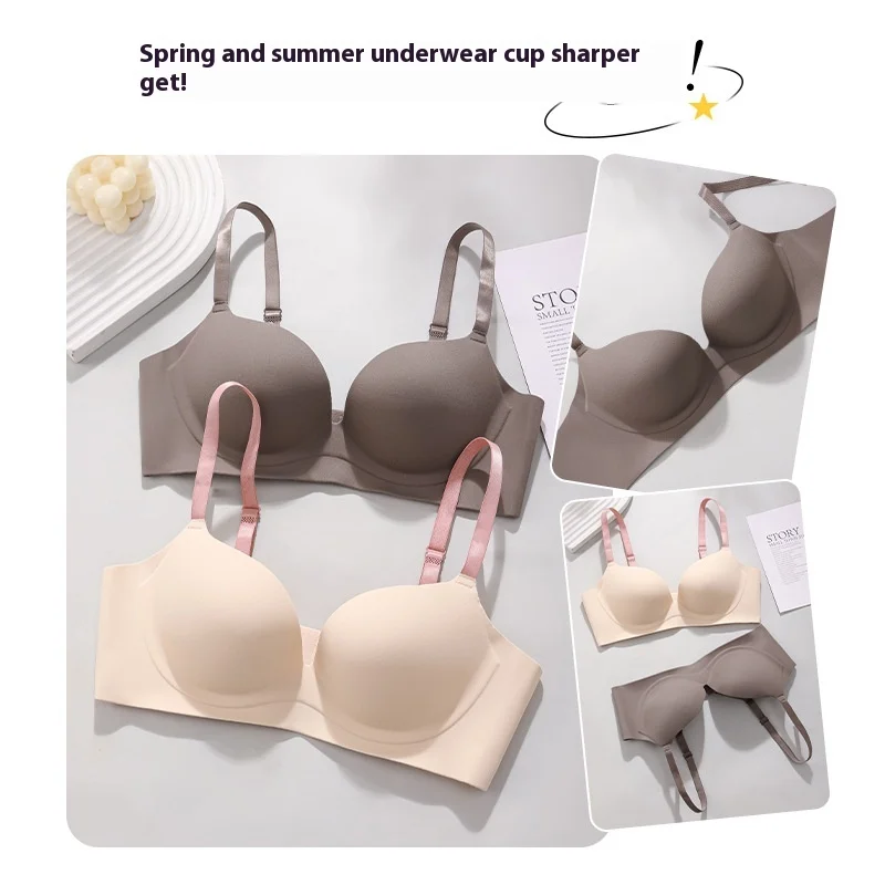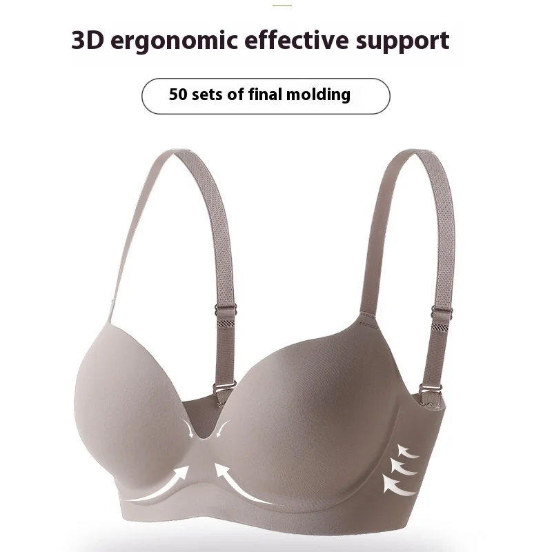 Women's Comfortable Traceless Push-Up Bra Everyday Adjustable Steel Ring-Free Anti-Sagging Breathable Strap Available Small