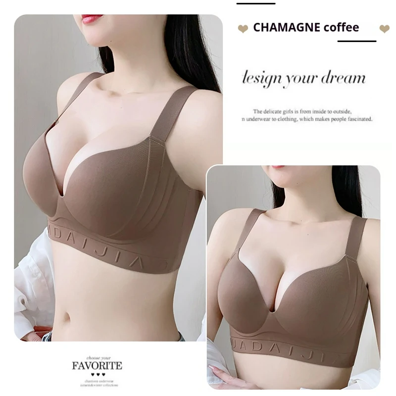 Customized Logo Seamless Plus Size Wireless Bra for Women Push up Bralettes Ladies V Neck Full Cup Padded Scalloped Bras