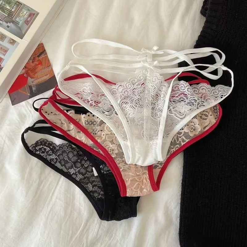 Luxury Romantic Transparent Sexy Lace Panties Ladies Thin Bottom Low Waist Wear Comfortable Women's Bikini Panty Hollow Lace