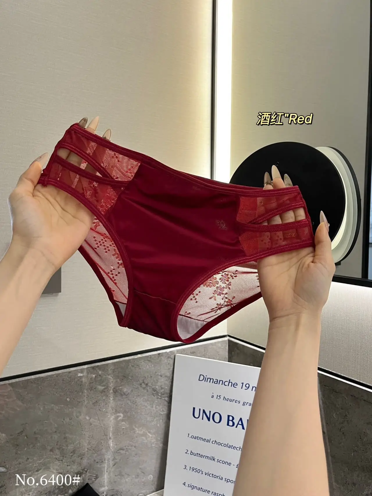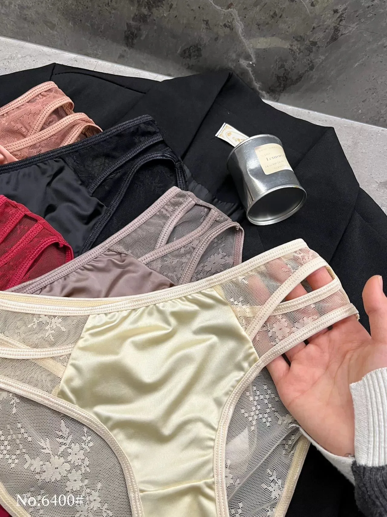 Luxury Satin Women's Underwear French Lace Triangle Briefs Sexysheerlingene Semi-Transparent Comfortable Waist for Ladies