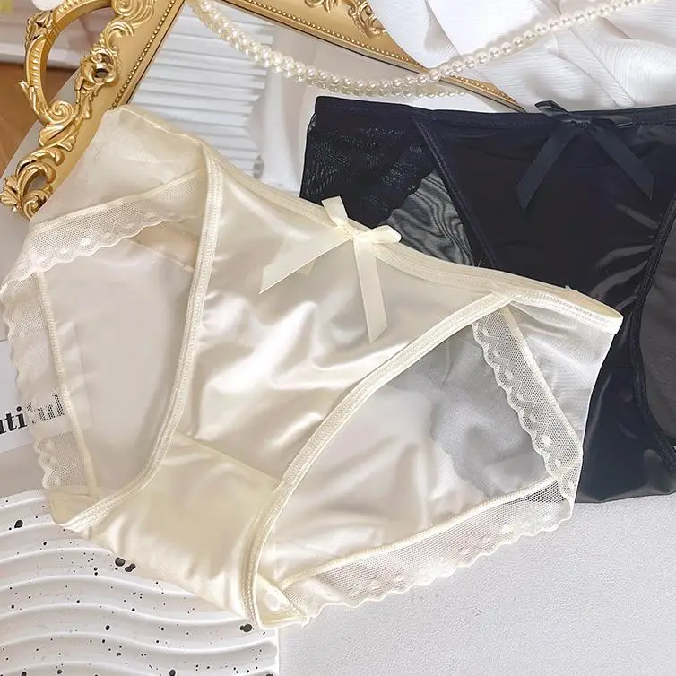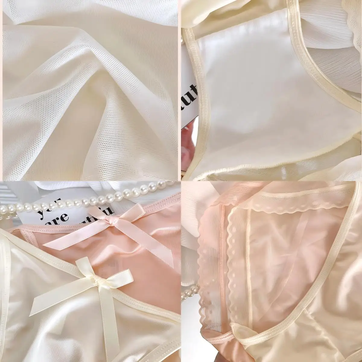 Women's Everyday Romantic Sexy Lace Openwork Breathable Comfort Underwear Satin Fabric Stretch Triangle Bikini Knitted Weaving