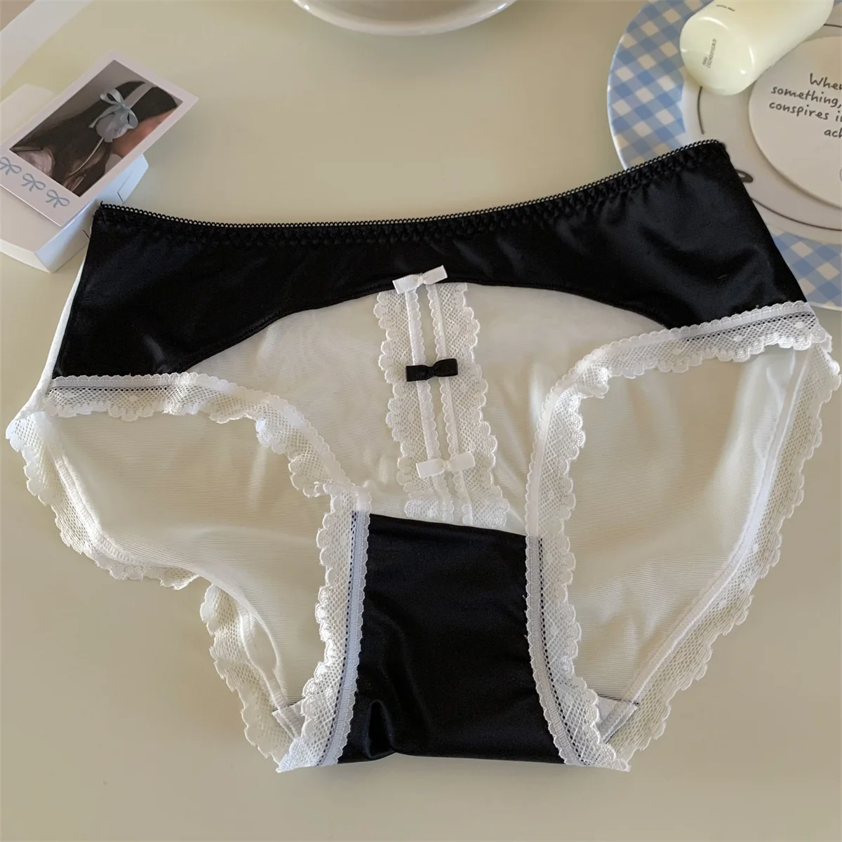 Luxury High Quality Women's Hipster Panties Bows Pattern Breathable Seamless Mid-Rise Thin Romantic Sheer Sexy Lace Waist