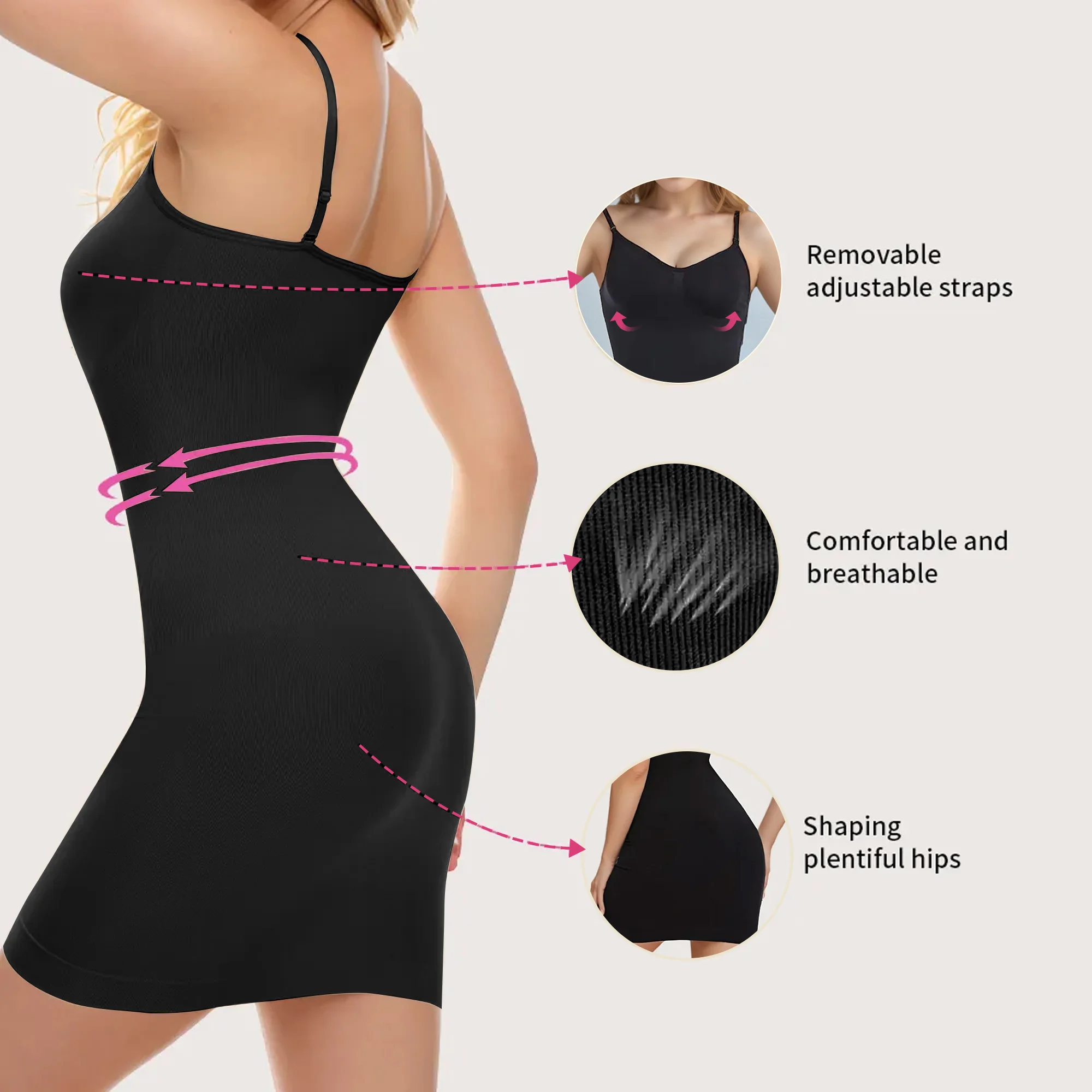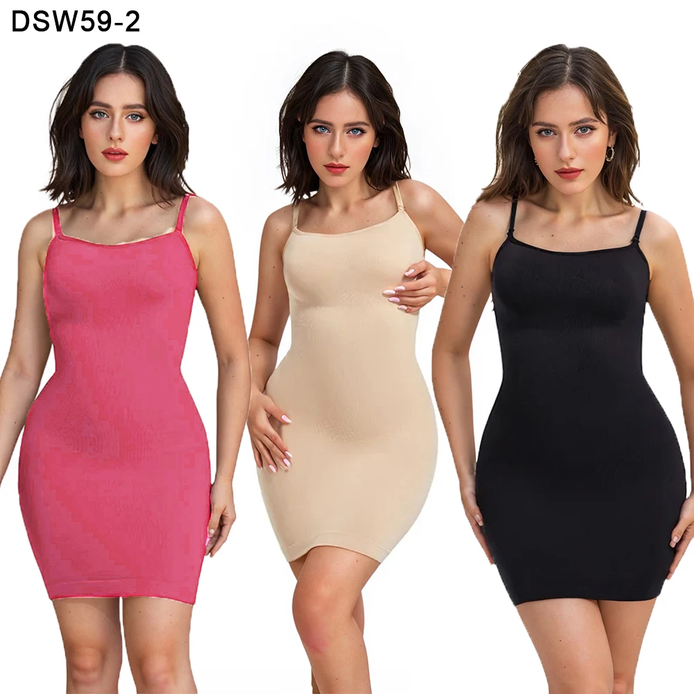 Tummy Control Square U Neck Adjustable Spaghetti Strap Slimming Basic Plus Size Body Shaper Shapewear Bodysuits Dress for Women
