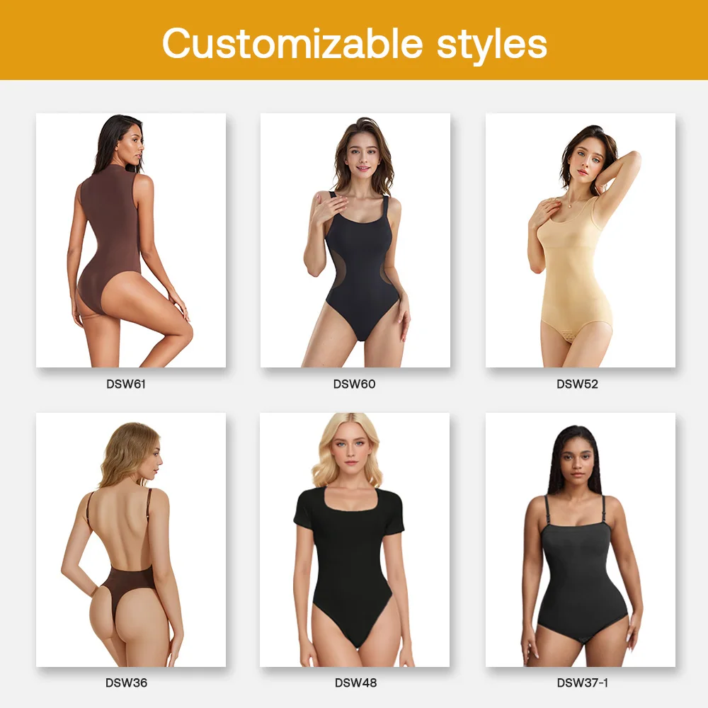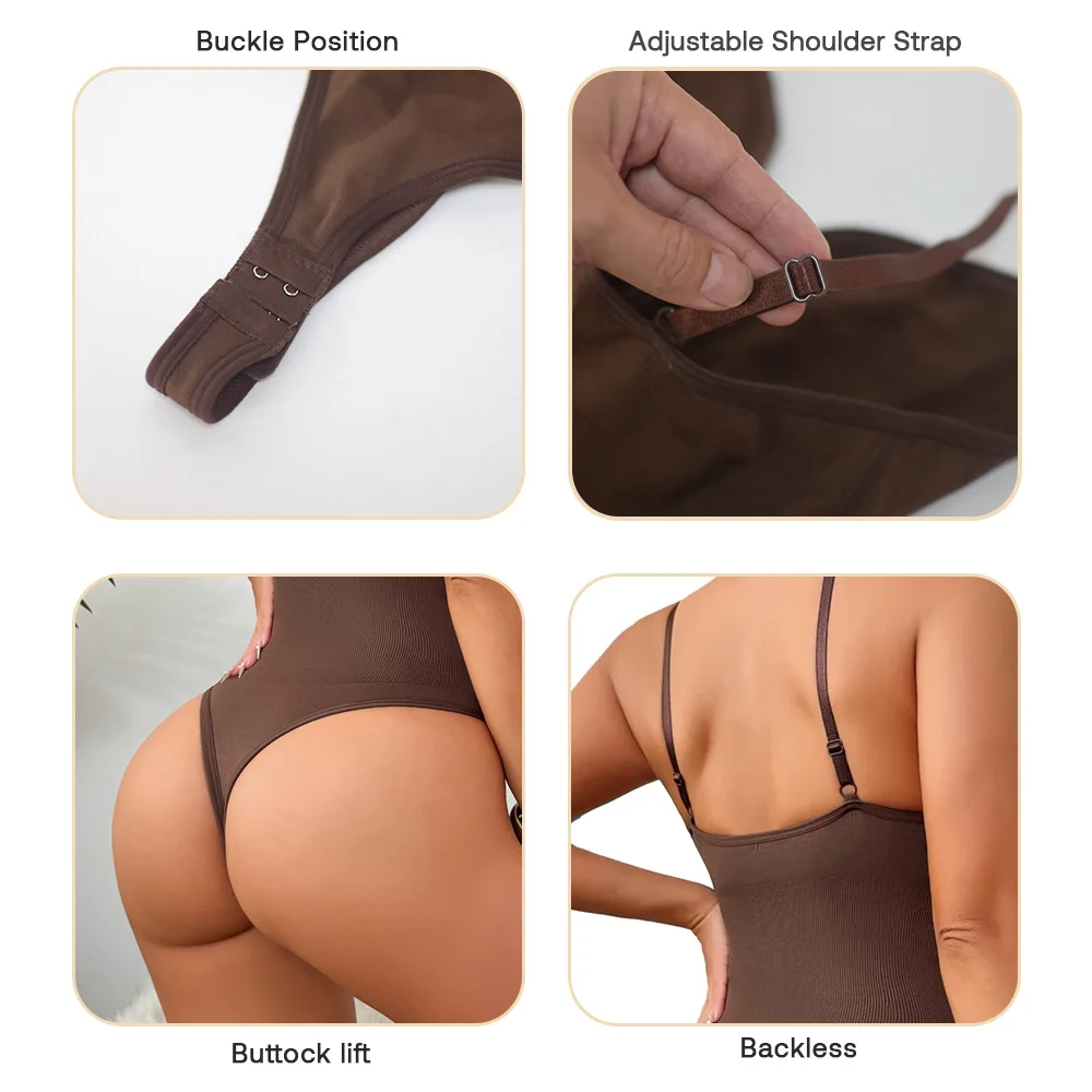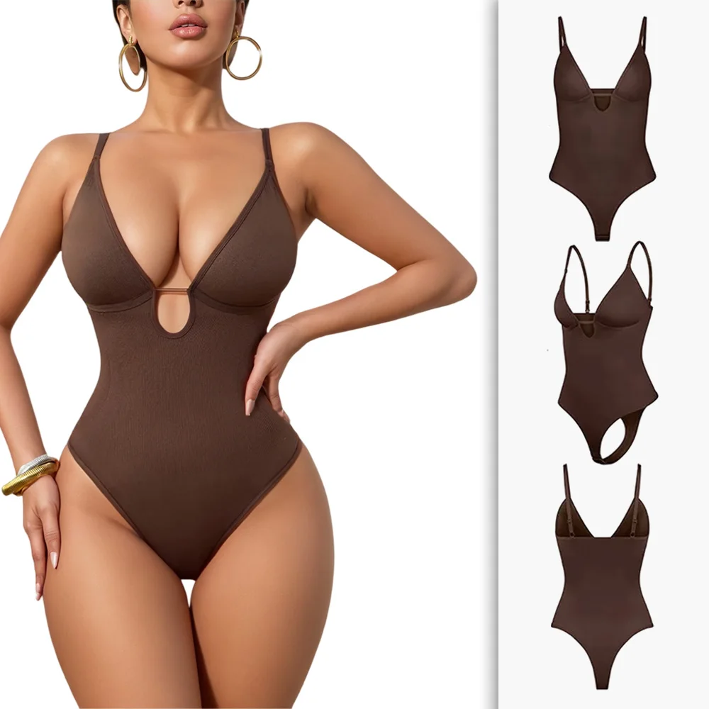 One-piece Tummy Control Ultra-Low V Neck Adjustable Spaghetti Strap Slimming Thong Panty Plus Size Shapewear Bodysuits for Girl