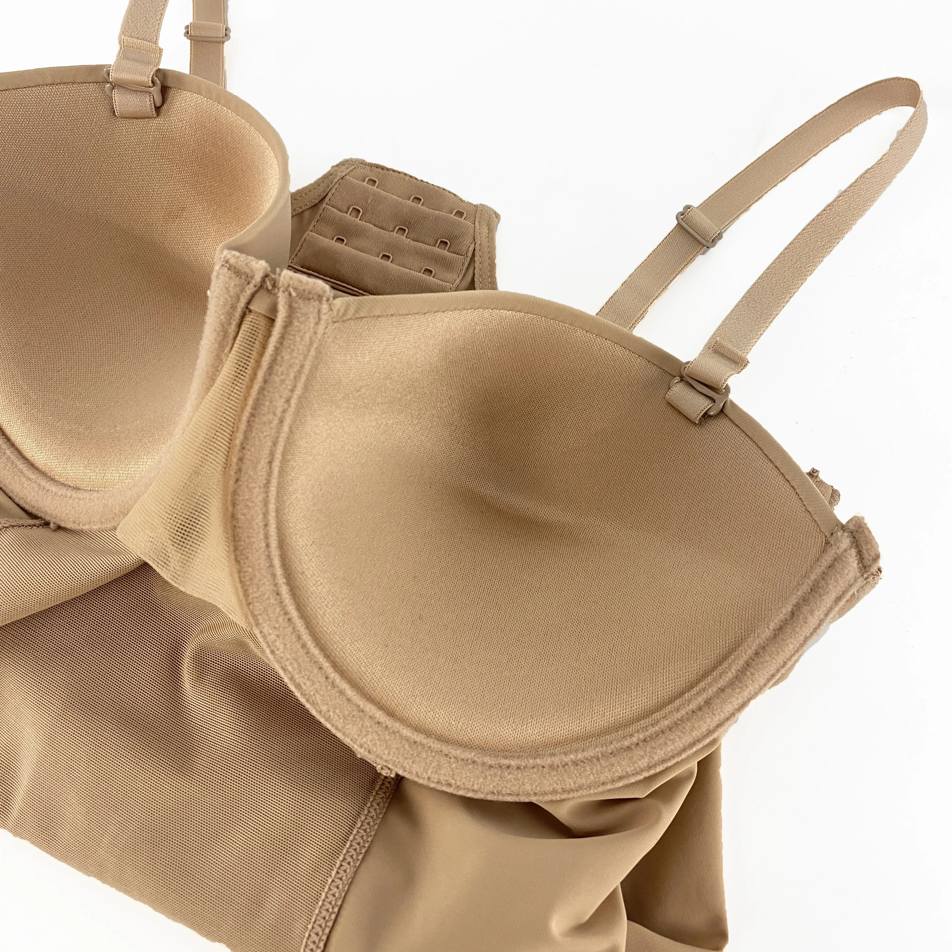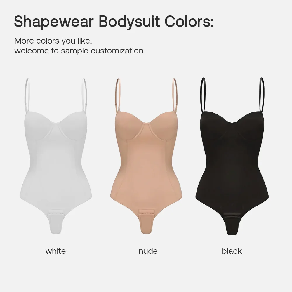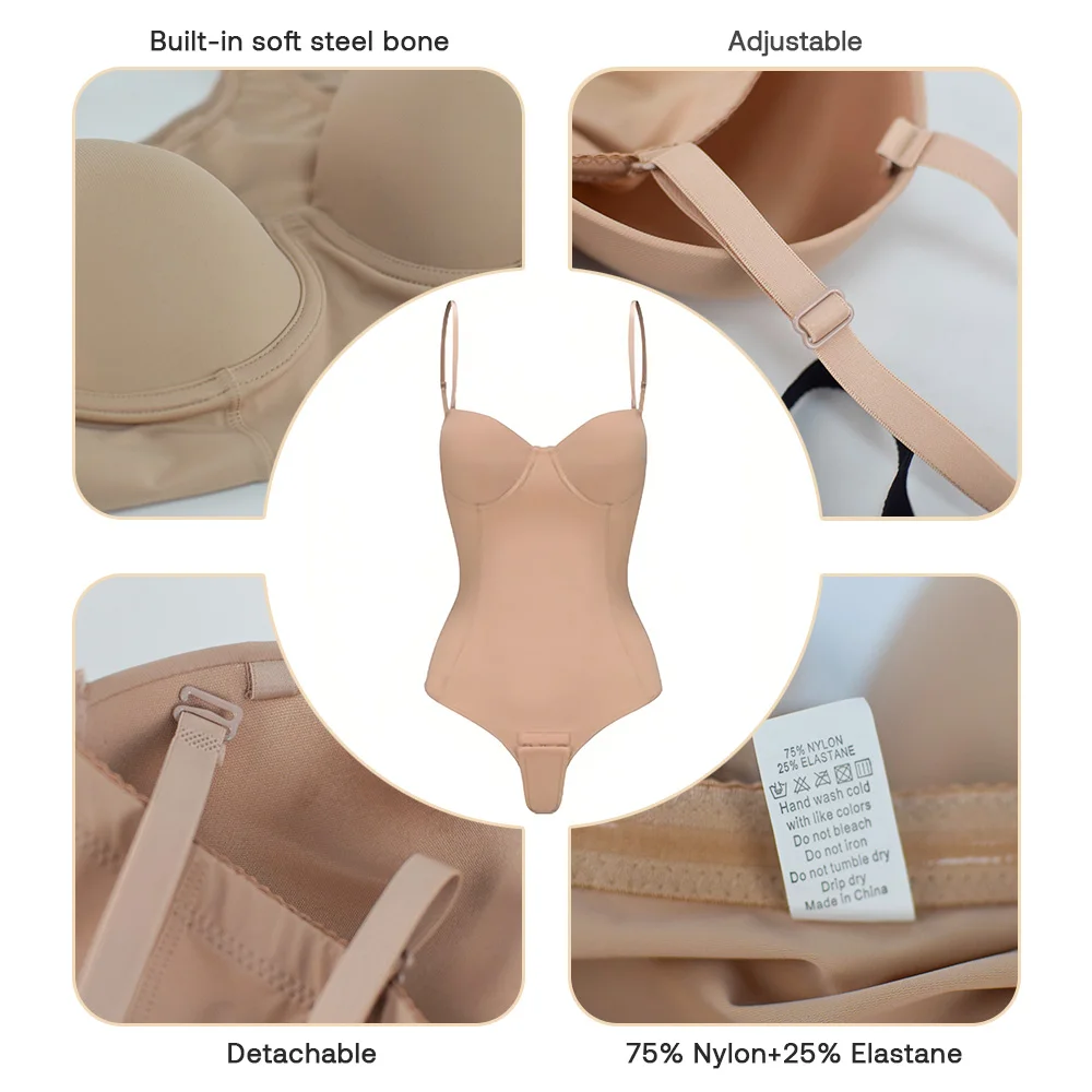 Tummy Control Slimming Full Body Shaper Detachable Straps Double Layer Built-in Bra Bodysuit One Piece T-back Shapewear for Girl
