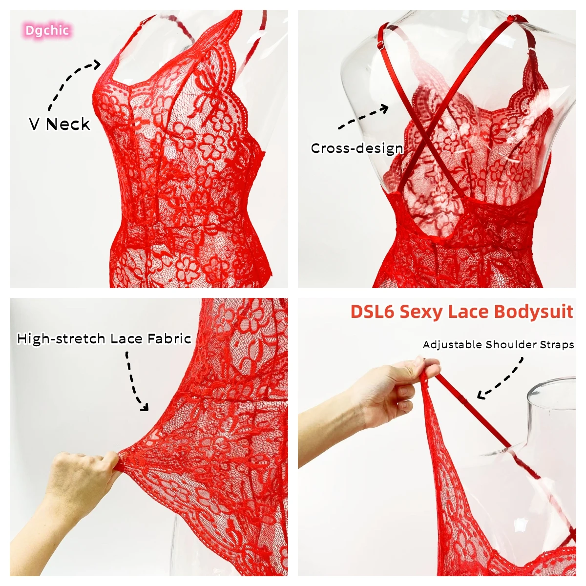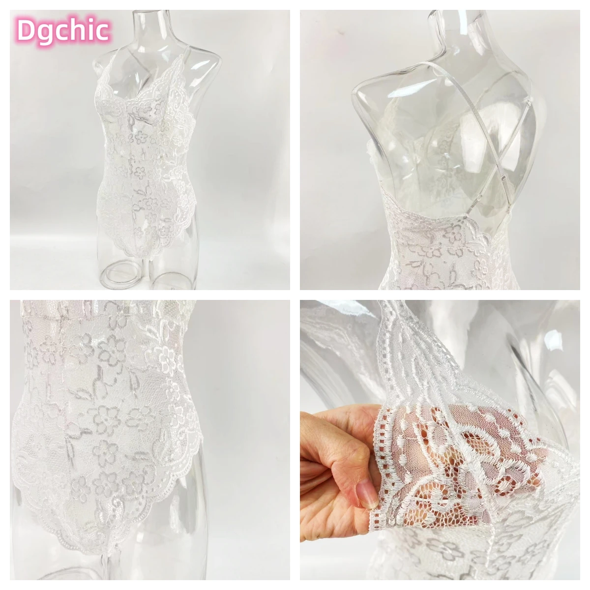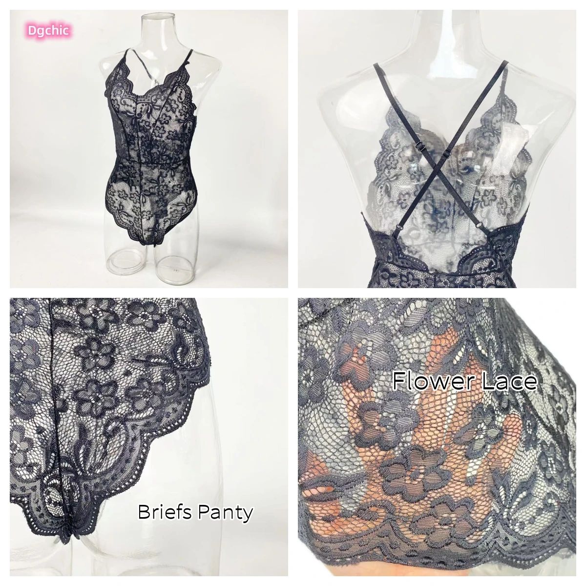 Lace One Piece Babydoll Sleepwear Backless Mini Teddy V Neck Lingerie Briefs Bodysuit for Women Valentine's Day Gift